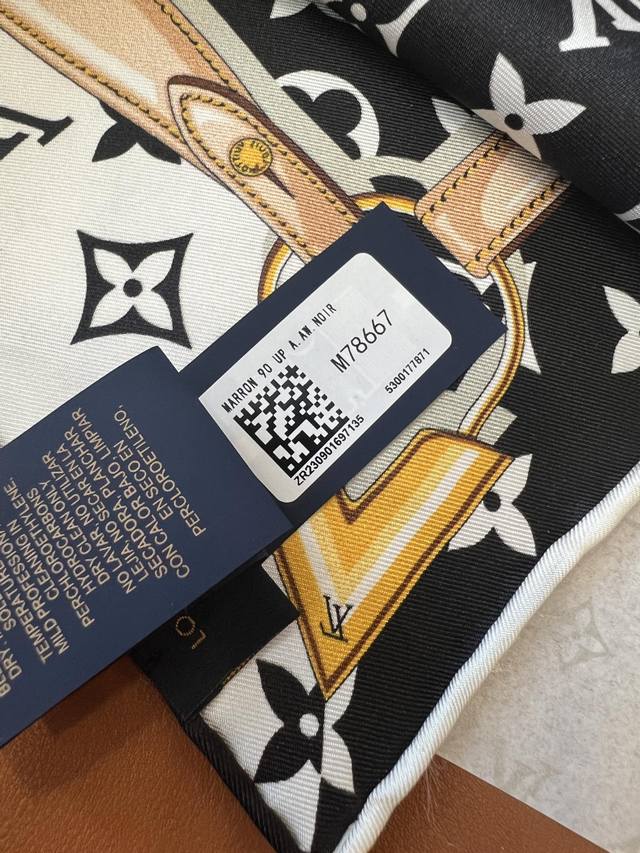 Chain square handkerchief in black and white. Washing label code: M78667. Authentic item number: