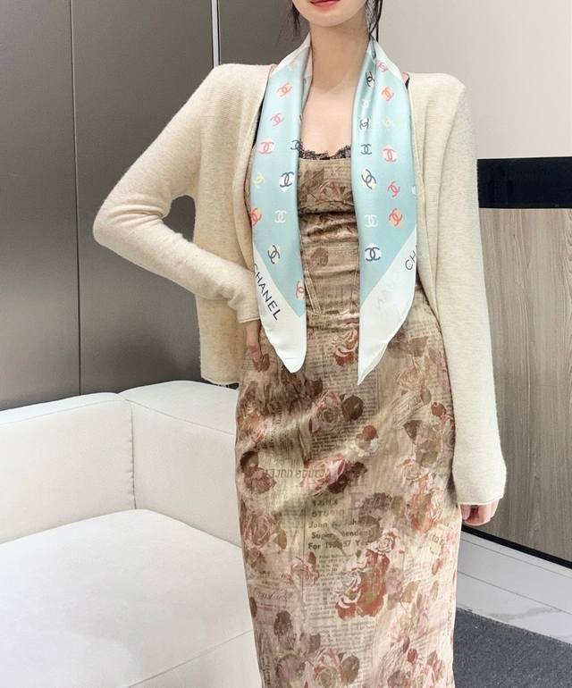 Chamel Little Chanel Bow 90 Silk Square Scarf Grab the VIP Recommendation, so hurry up! High-end, women-friendly, and rare, it can be used in all seasons. It's truly stunning and makes you want to wear it. The effect is simply stunning. The quality is impeccable. The whole scarf has a high-end aura while being very delicate and beautiful. It's definitely worth buying. The new model will make you feel lucky to be a woman once you get it. It's a wonderful product worth savoring, with perfect temperament and taste. Ditails first choice for VIPs. 90*90% top-grade twill silk