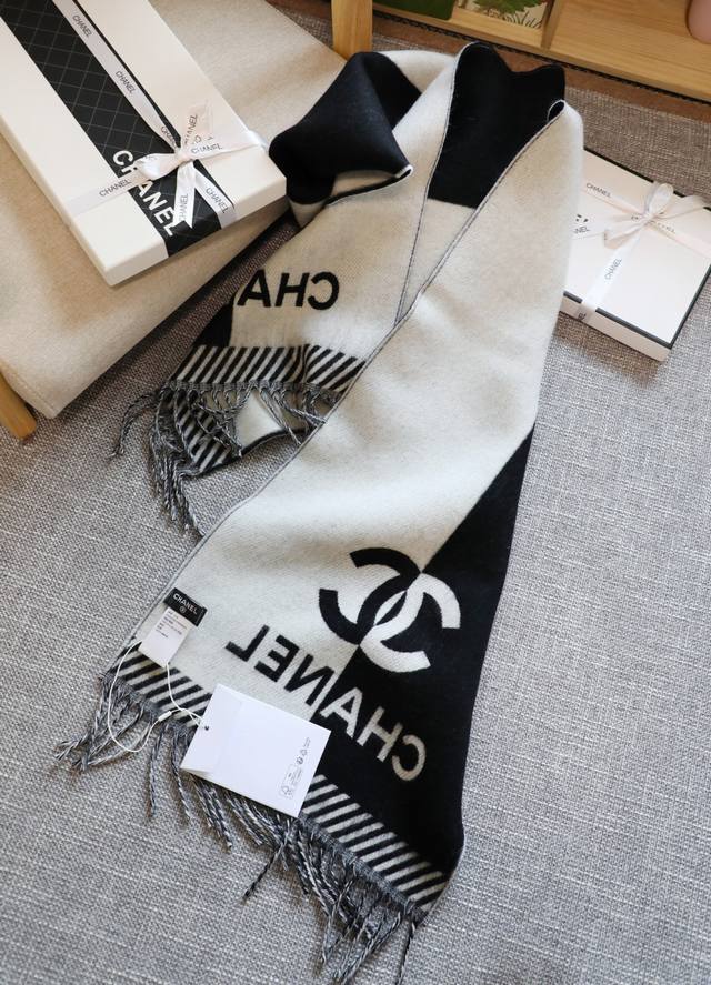 Chanel Classic Tricolor Two-Tone Scarf (