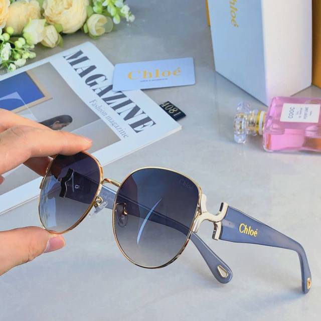 Chlo* concave metal large frame oval sunglasses women's fashion face-revealing small UV protection sunglasses