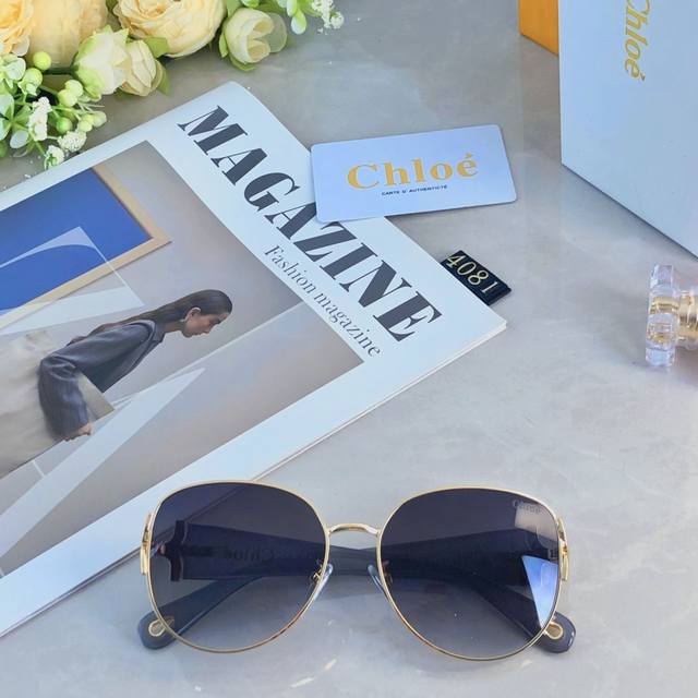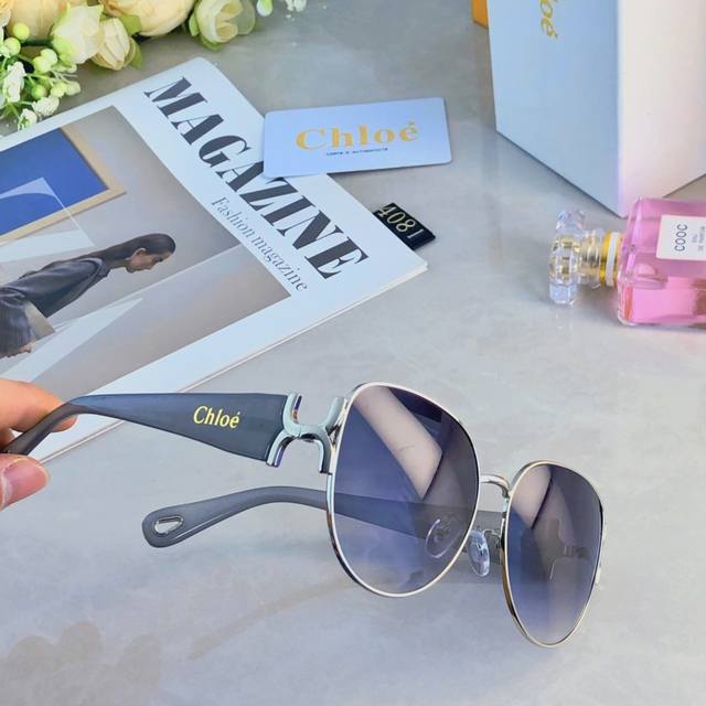 / Chlo* concave metal large frame oval sunglasses women's fashion face-revealing s