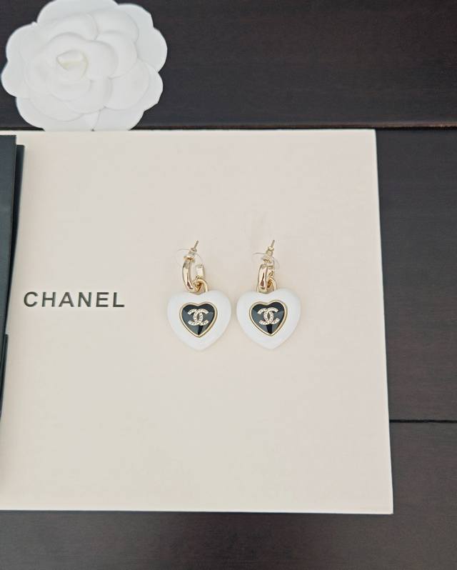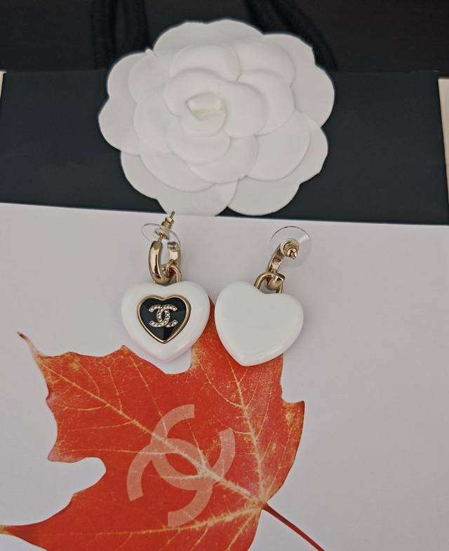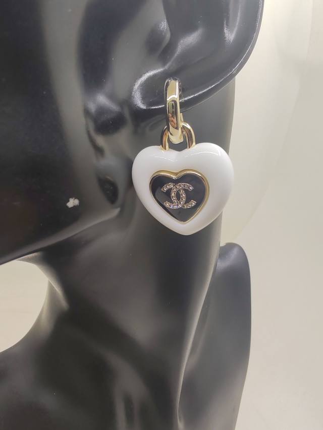 / Ch*Nel latest black and white heart earrings consistent Zp brass material