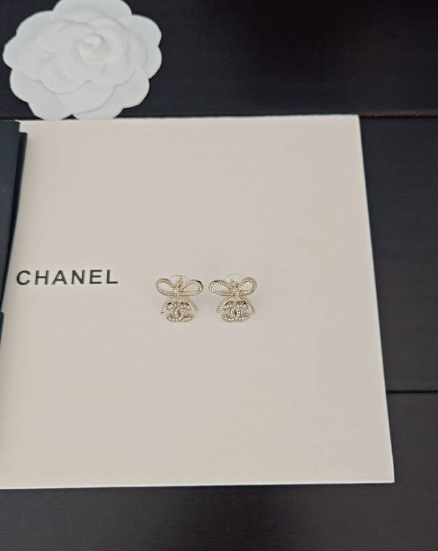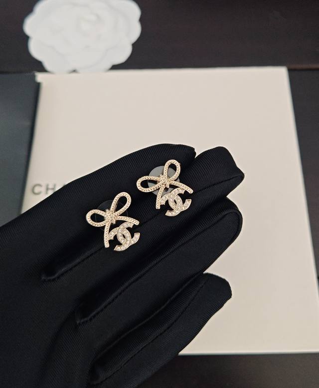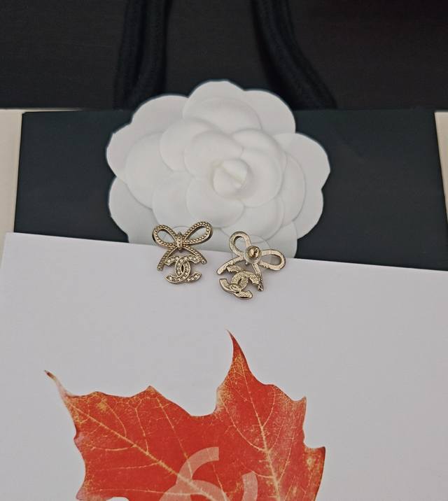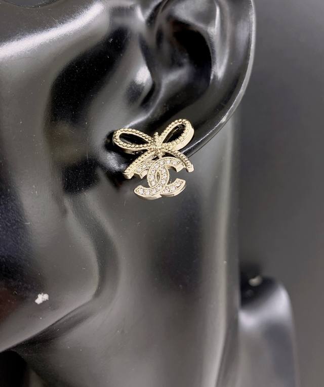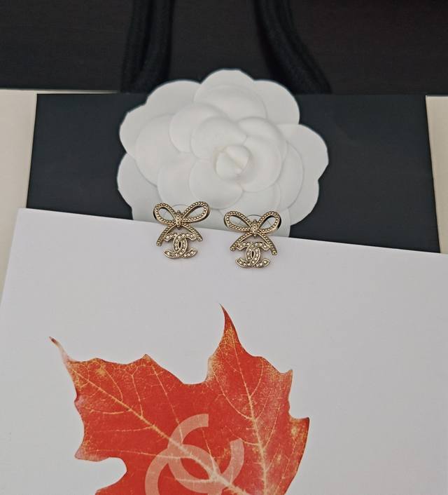 / Ch*Nel latest light gold bow Cc earrings consistent Zp brass material