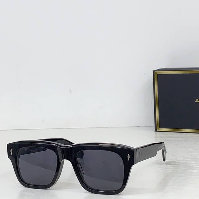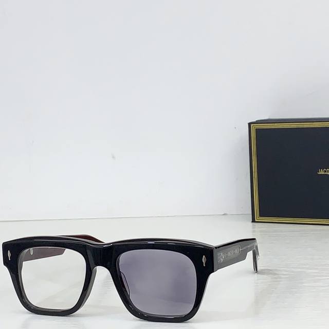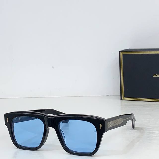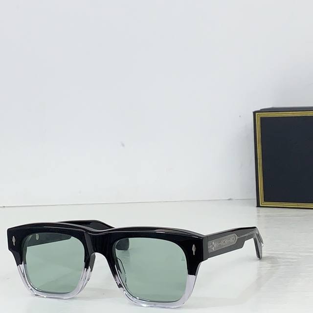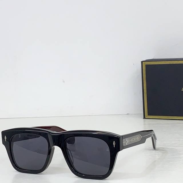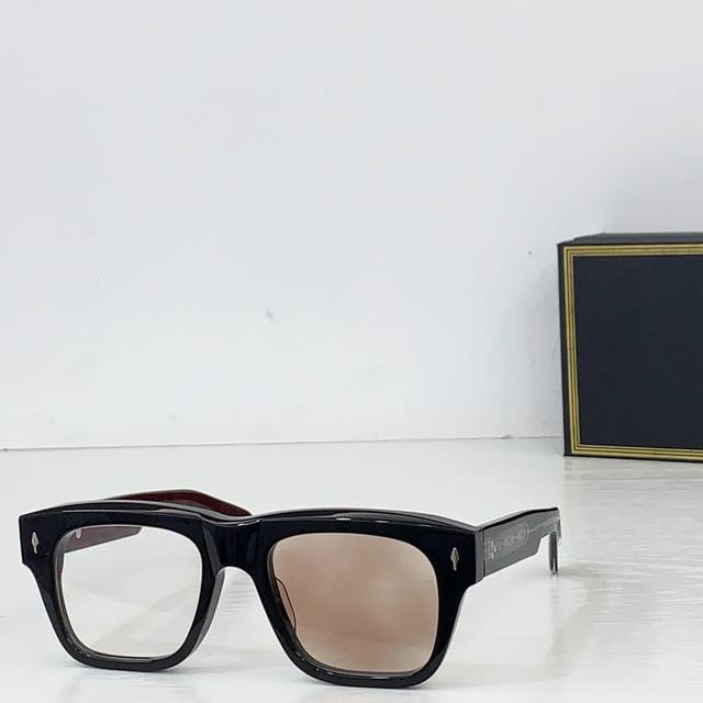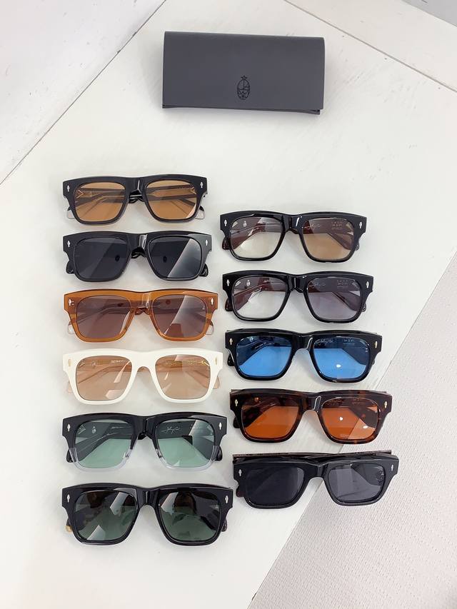 Japanese Handmade Eyewear Cash Sunglasses. The design of these sunglasses is inspired by the sunglasses worn by Johnny Cash when he was arrested in El Paso, Texas in 1965. These sunglasses feature a striking brow line, sculpted temples, and Jmm's signature precious metal details. Their design exudes a bold yet sophisticated aesthetic, echoing Cash's unique blend of rebellious and refined style.