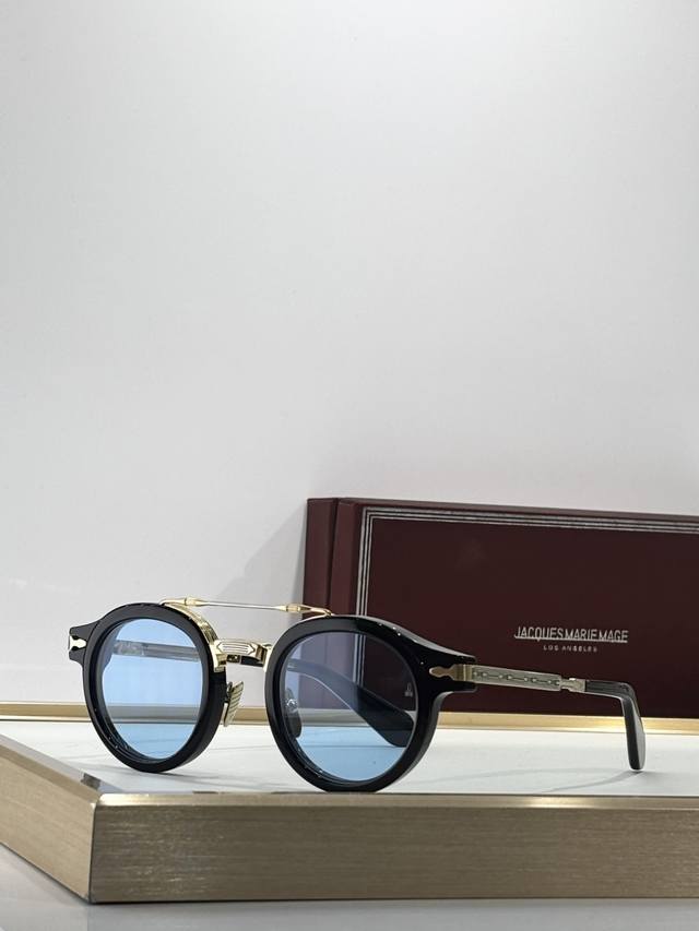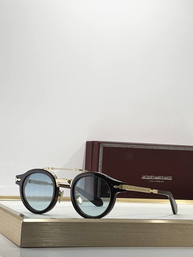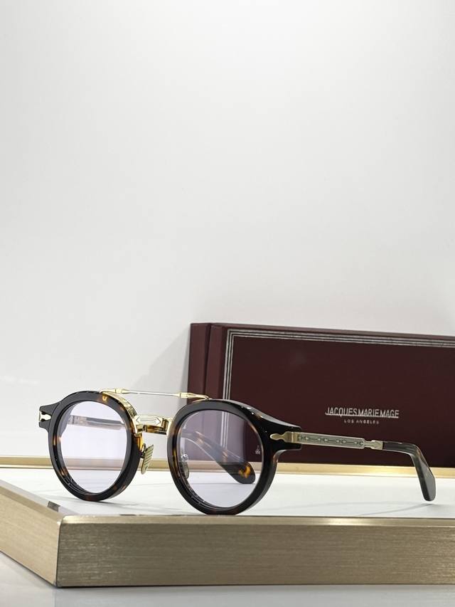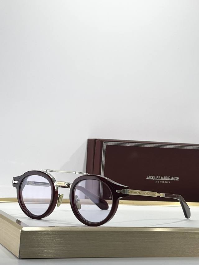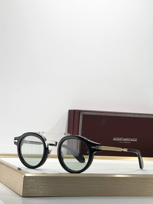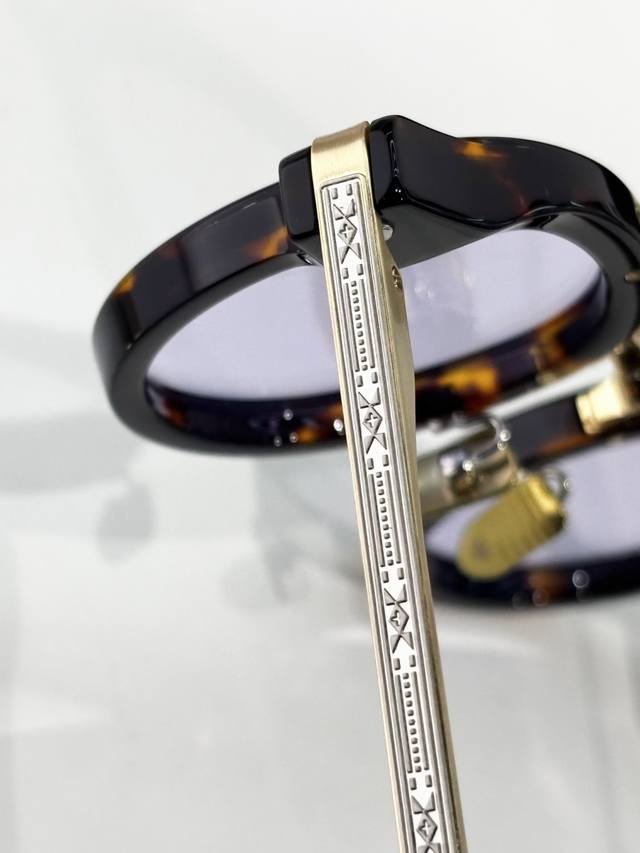 - Sold Out Online - Limited Edition Unique Collector's Edition. A classic 1950s style combination pair of glasses featuring a prominent acetate brow bone, vintage metal lenses, our signature arrow-shaped one-piece hinge, and finely engraved temples with a unique arrow pattern. Custom nose pads with logo and hairline engraving. Model: Delage. Size: 45 (25-147).