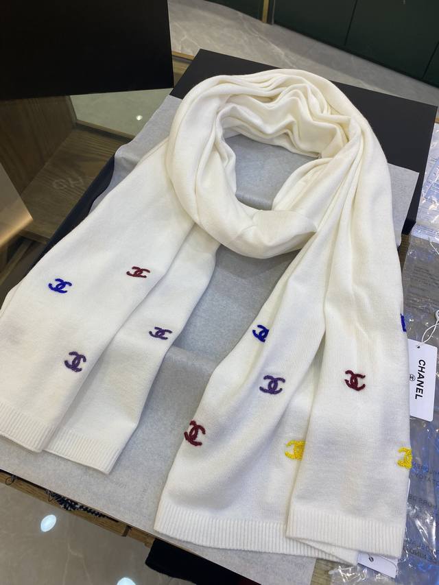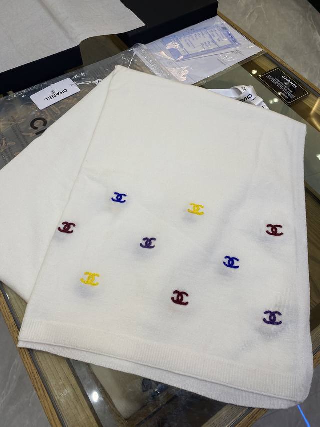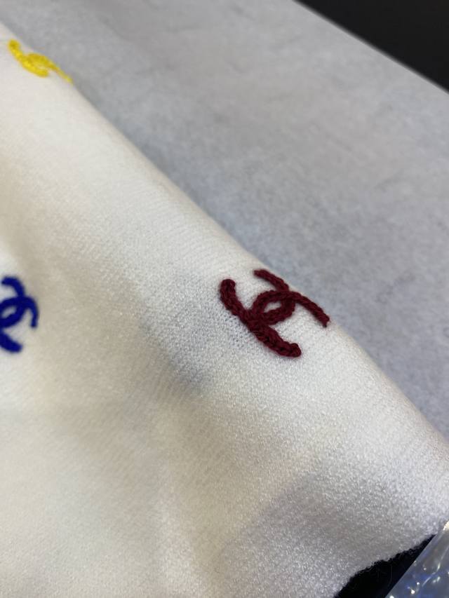 Colorful cashmere scarf with small logo The whole scarf is made of fine cashmere and silk woven into a thin blend. It feels very soft and comfortable, fragrant and soft, giving you the feeling of a rich girl. Material: 60% cashmere 40% silk