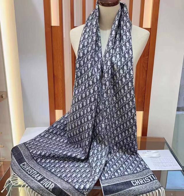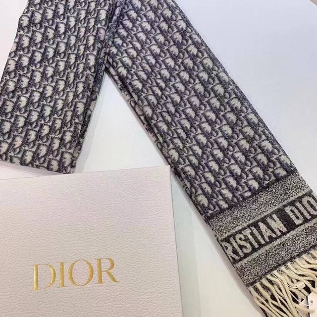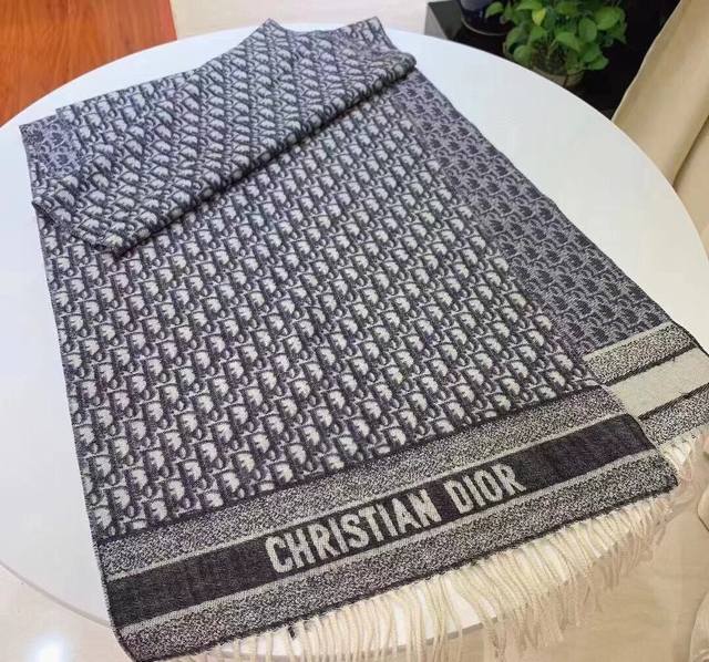 This cashmere scarf features the iconic Dio* Oblique embroidery pattern, first introduced by Dio* in 1967. This scarf is primarily knitted, with stripes along the edges highlighting the Dio* logo. Tie it around your neck for a touch of graphic detail and a versatile accessory.