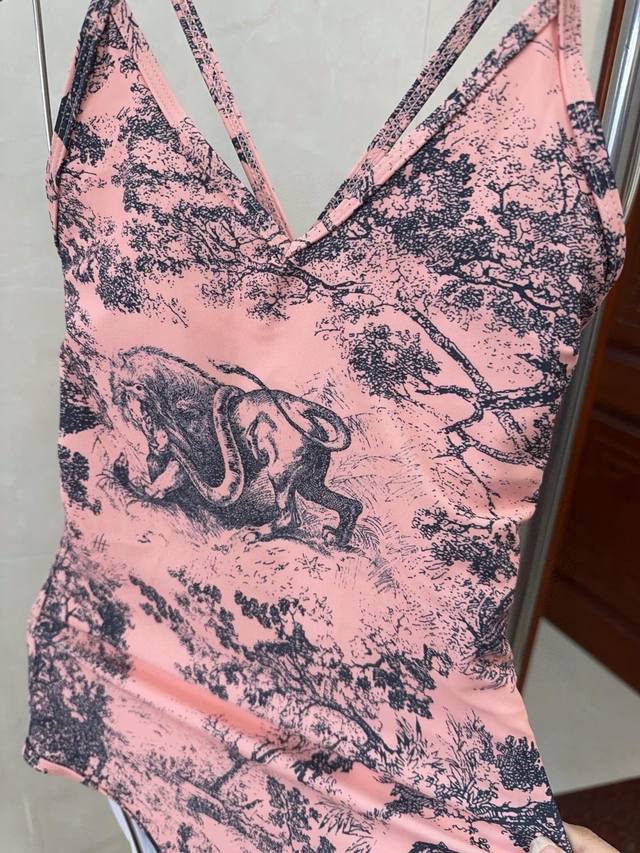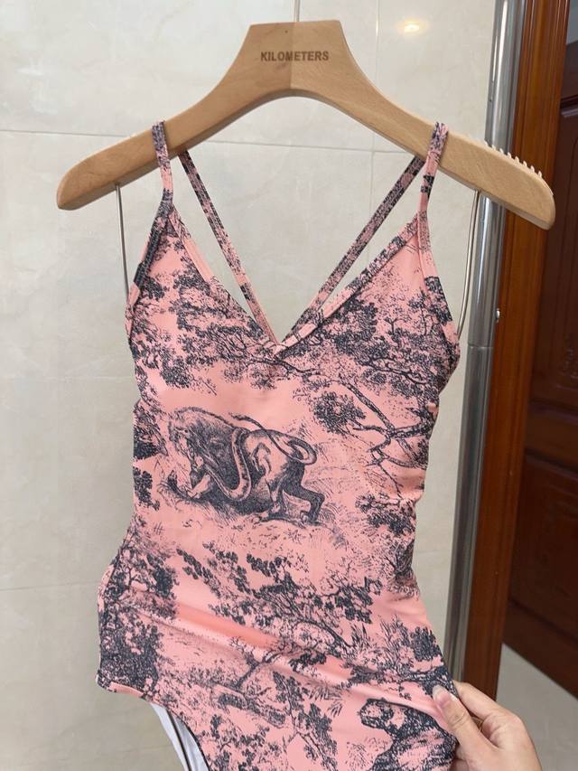 Dio* new D home classic animal jungle Rue print cross back one-piece swimsuit with chest pads casual versatile tight top, a must-have for seaside resorts, hot springs and swimming pools! Blue, pink,