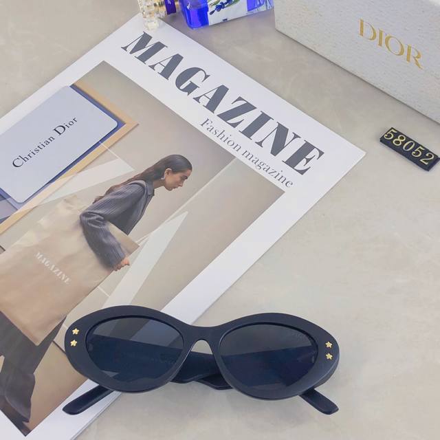 Dio*2025 European and American fashion women's oval star decoration sun glasses European station Xiaohongshu street shooting wide-leg cat sunglasses