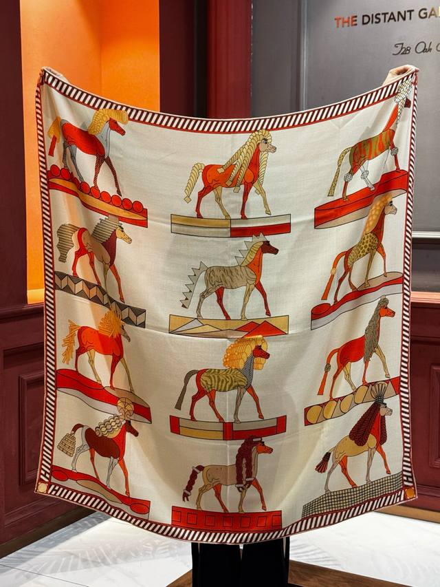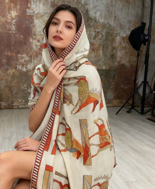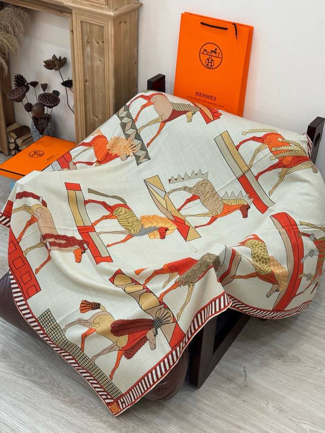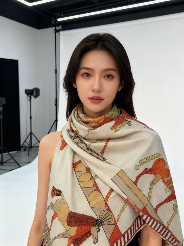 This classic piece showcases the essence of powerful and captivating feminine charm. This 140 square scarf is innovatively interpreted, conveying boundless emotion and freedom, writing a unique narrative of individuality.