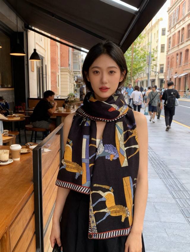 This classic piece showcases the essence of powerful and captivating feminine charm. This 140 square scarf is innovatively interpreted, conveying boundless emotion and freedom, writing a unique narrative of individuality.