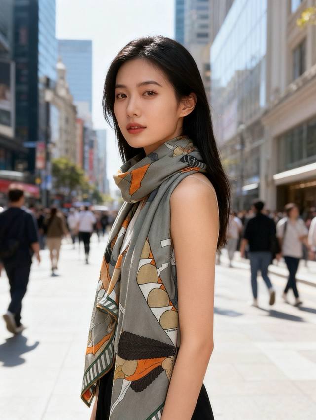 This classic piece showcases the essence of powerful and captivating feminine charm. This 140 square scarf is innovatively interpreted, conveying boundless emotion and freedom, writing a unique narrative of individuality.
