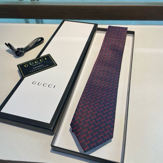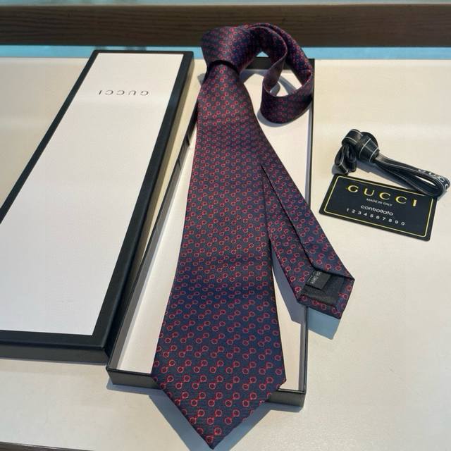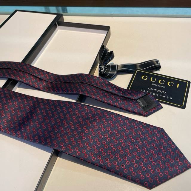 G's new men's tie, featuring a rare jacquard pattern featuring the classic G logo, showcases exquisite craftsmanship and stylish elegance. This tie perfectly combines iconic design with a stylish and refined style, allowing men to fully express their individuality. 100% premium jacquard silk, hand-made and custom-made.