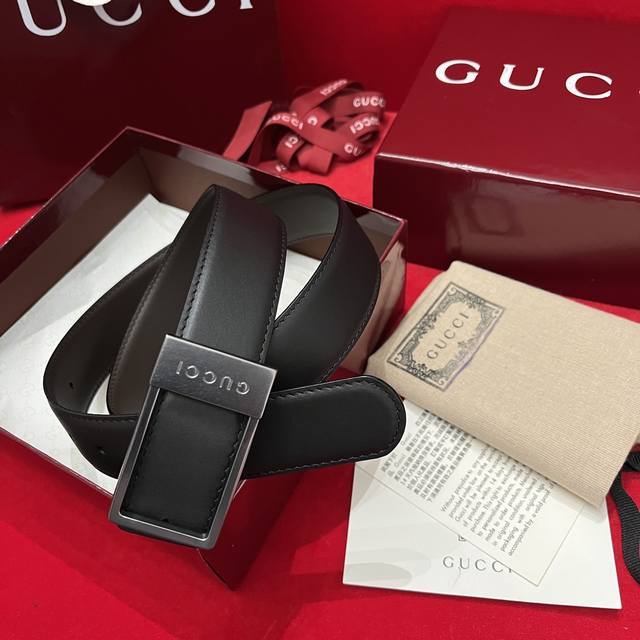 G's new rectangular buckle Gg men's belt width 3.5cm. This double-sided imported