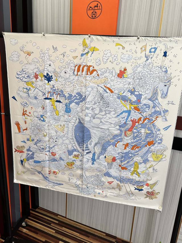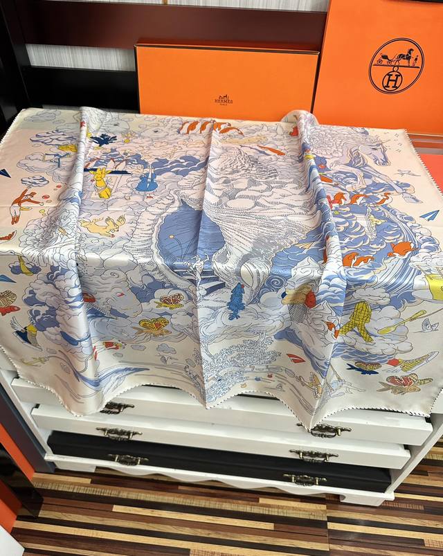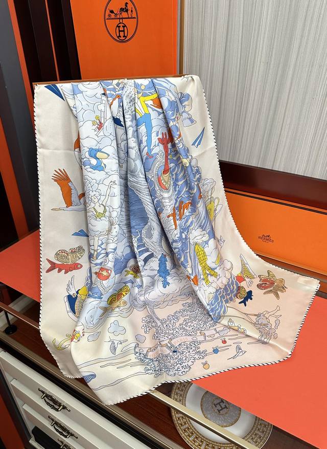 High Version 2025 My Cloud-like Design is like a dreamy invitation. This silk scarf is full of childlike fun and imagination, taking you on a journey through the sky. The clouds are lively, yet you can also feel the deep tranquility of the ocean. The ever-changing clouds exude a free and dreamy atmosphere. The elegant and playful color scheme is sophisticated. Recommended for gifting or personal use. Size: 90X90, Material: Silk, 3 colors.