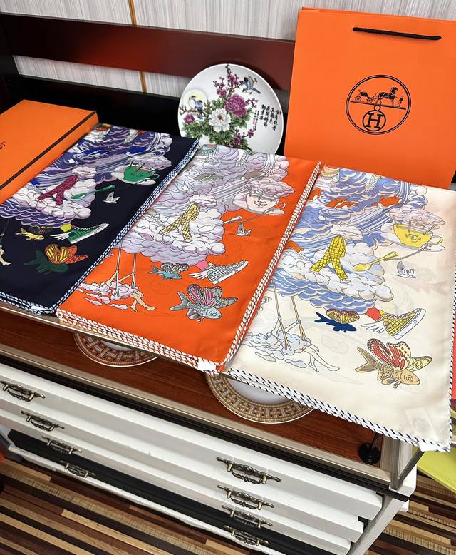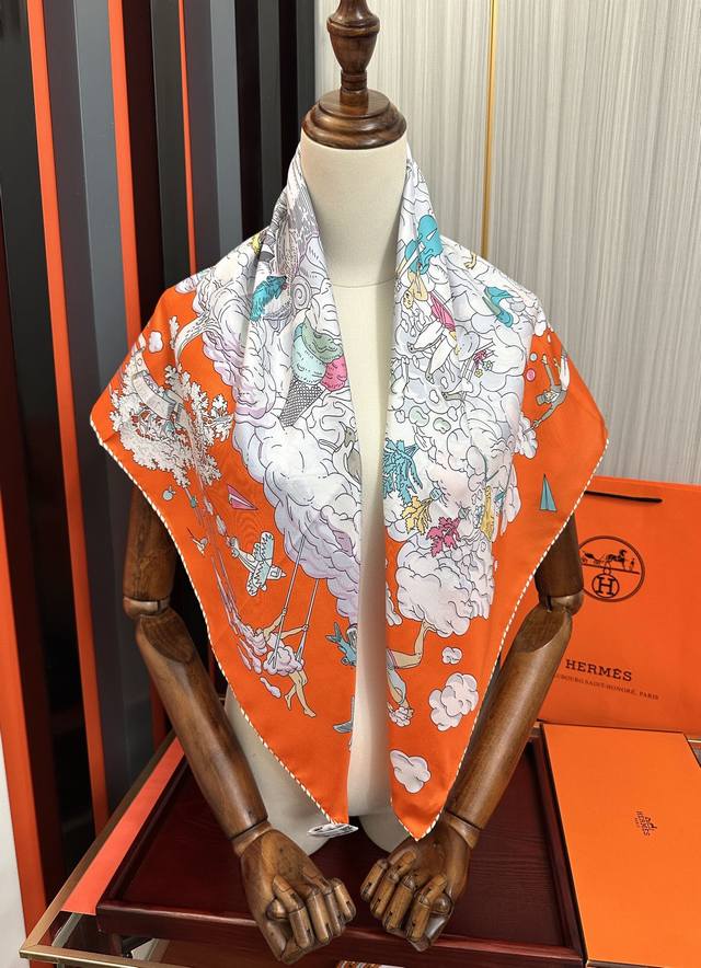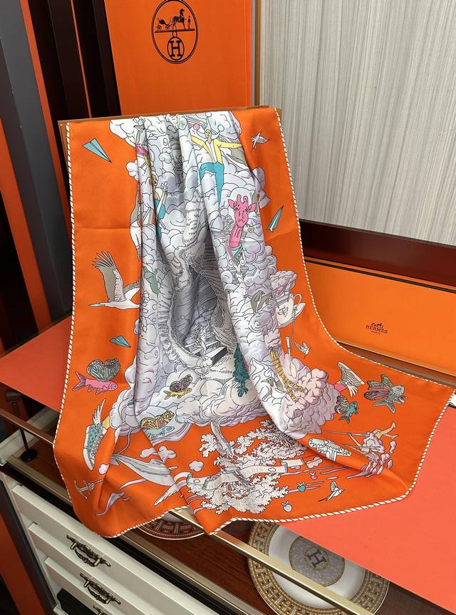 High Version 2025 My Cloud-like Design is like a dreamy invitation. This silk scarf is full of childlike fun and imagination, taking you on a journey through the sky. The clouds are lively, yet you can also feel the deep tranquility of the ocean. The ever-changing clouds exude a free and dreamy atmosphere. The elegant and playful color scheme is sophisticated. Recommended for gifting or personal use. Size: 90X90, Material: Silk, 3 colors.