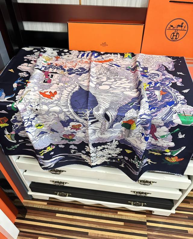 High Version 2025 My Cloud-like Design is like a dreamy invitation. This silk scarf is full of childlike fun and imagination, taking you on a journey through the sky. The clouds are lively, yet you can also feel the deep tranquility of the ocean. The ever-changing clouds exude a free and dreamy atmosphere. The elegant and playful color scheme is sophisticated. Recommended for gifting or personal use. Size: 90X90, Material: Silk, 3 colors.