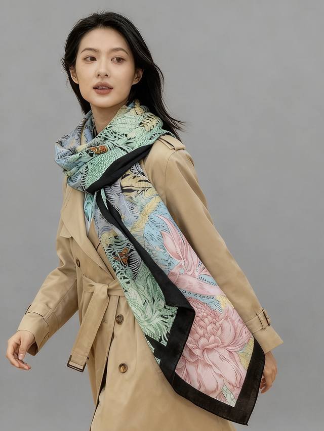 More specifically, it revolves around the city's animals and natural environment. When people think of Los Angeles, they only remember skyscrapers, completely forgetting the animals, insects, birds, and other species that live in California. In this scarf, the designer wanted to highlight California's natural environment, so he downplayed the city's architecture. Nature may be driven away, but it will rush back. Hidden in the maze-like streets and ubiquitous vegetation, a group of wild animals cautiously observe the city