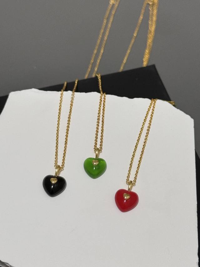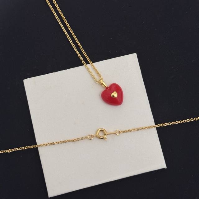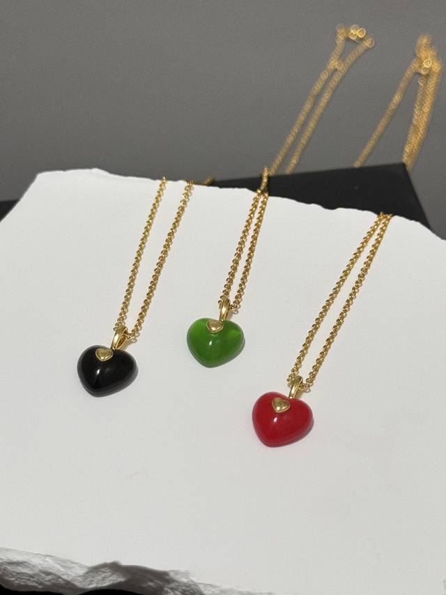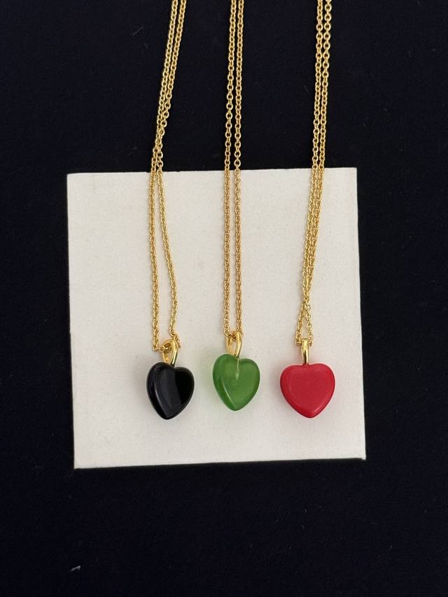 Niche heart necklace from the Korean Coldfr Me niche brand. This amazing heart necklace comes in three colors: green + gold, red + gold, and black + gold! It's so beautiful! It's hard not to love it! The heart stone is full and three-dimensional, and there's a metal heart embellishment in the middle, adding layering and a more fashionable look! It looks super cool and sassy when stacked, and can be salty or sweet. I really love it!