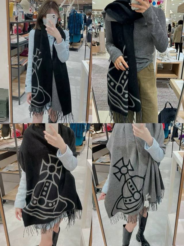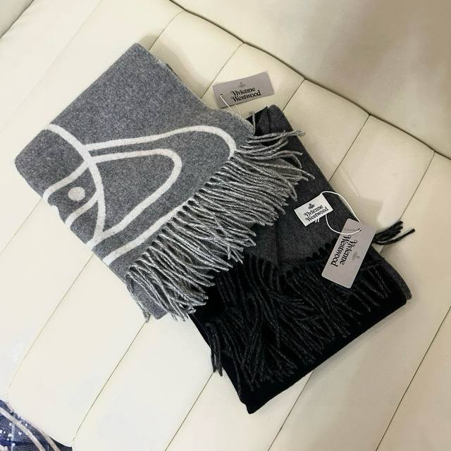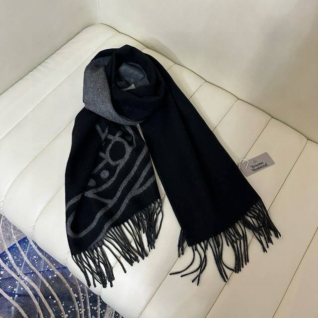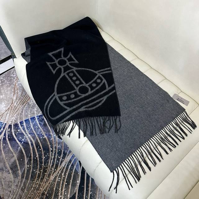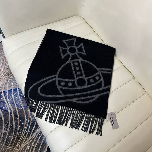 High-quality, high-density 22-count worsted yarn. Vivienne Westwood, the "Godmother of British Punk," loves the Saturn logo. In spirit, Vivienne Westwood is the most representative British fashion brand. This season's highly recommended product features a large "Saturn" logo jacquard, the meaning of which aligns with Westwood's design philosophy. The fabric is made of 95% high-strength wool and 5% cashmere. Size: 200*50cm, double-sided design, soft and comfortable to the touch. A super popular and sought-after item!