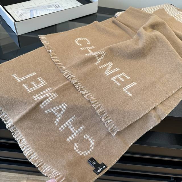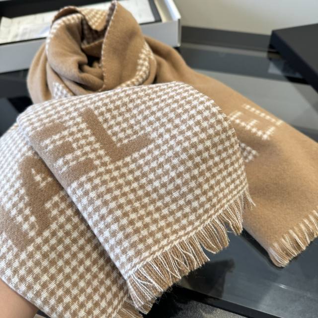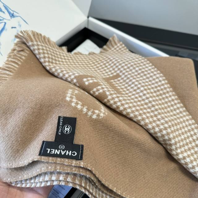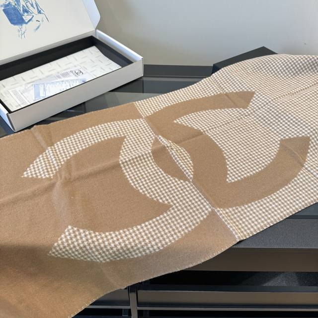 ) Chanel 23B Treasure Scarf, Classic Double C, Soft Milk Tea Color Paired with Classic and Elegant Houndstooth, Double Charm That's Irresistible, Elegant, Versatile, and Understatedly Beautiful~ (
