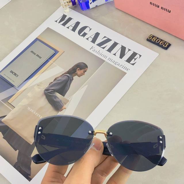 / Miumi* frameless trimmed sunglasses for women, high-end celebrity-style large-fr