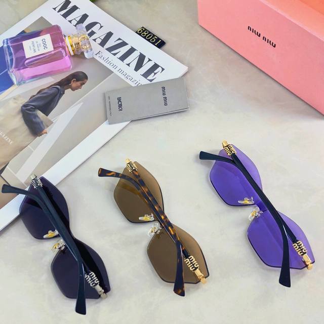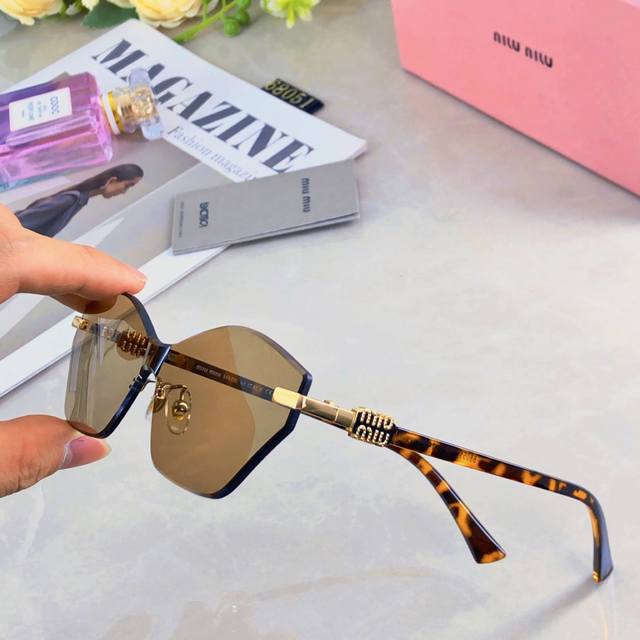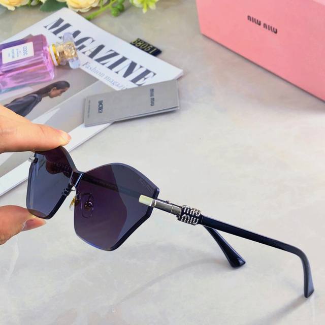 / Miumi* polygonal irregular frameless sunglasses ultra-light fashion street shoot