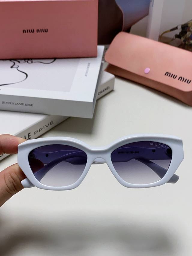 Miumiu 2025 new cat-eye navy blue polyhedron element sunglasses UV protection Tr material sunglasses women's hot fashion item