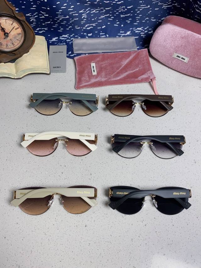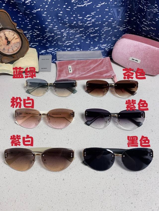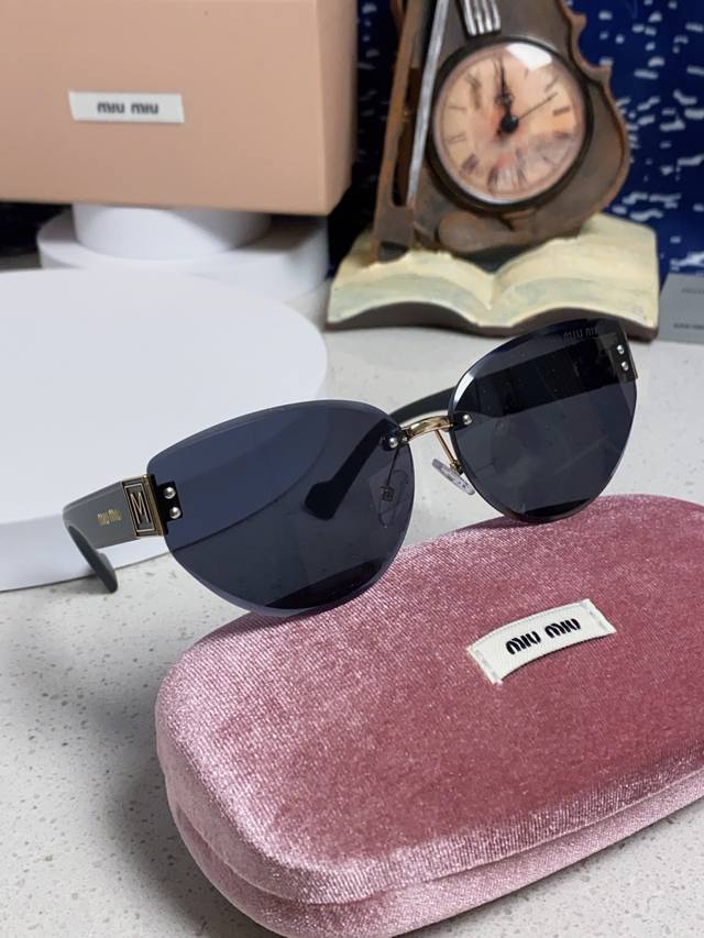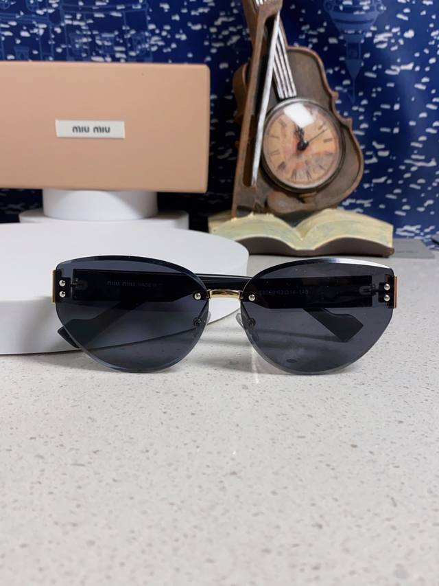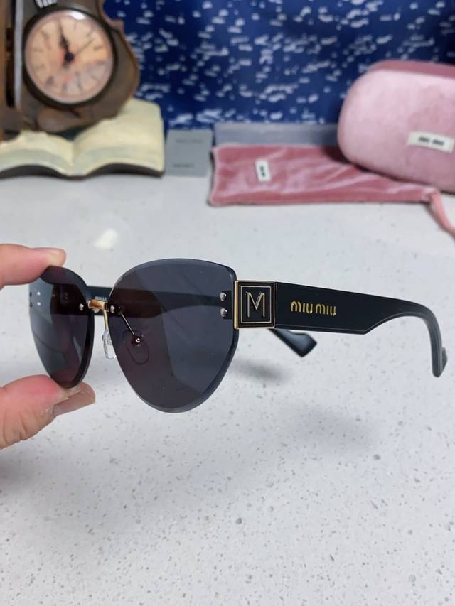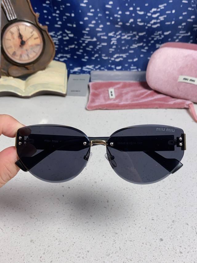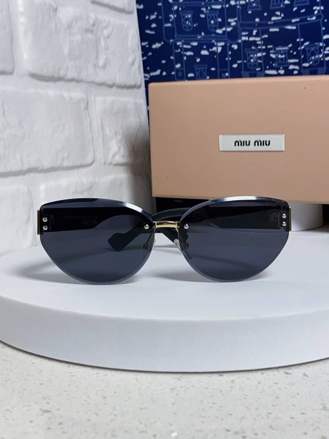 Miumiu 2025 new frameless sunglasses for women retro round face-shaping sunshade ladies sunglasses internet celebrity street shooting trend driving glasses