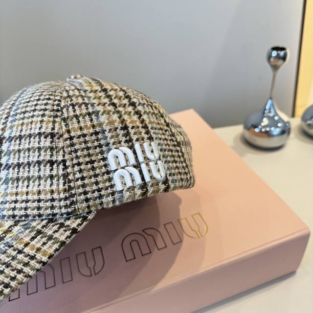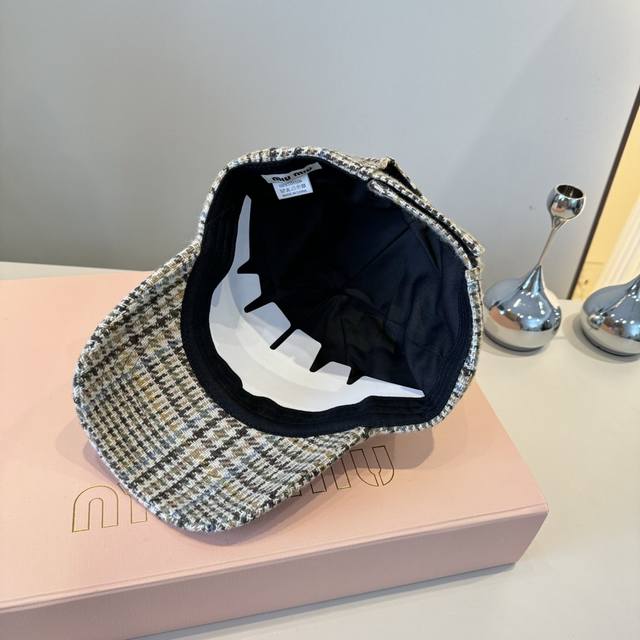 / Miumiu Miu Miu new autumn and winter wool cap, plaid baseball cap, head circumfe