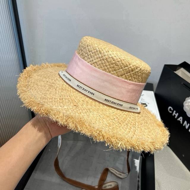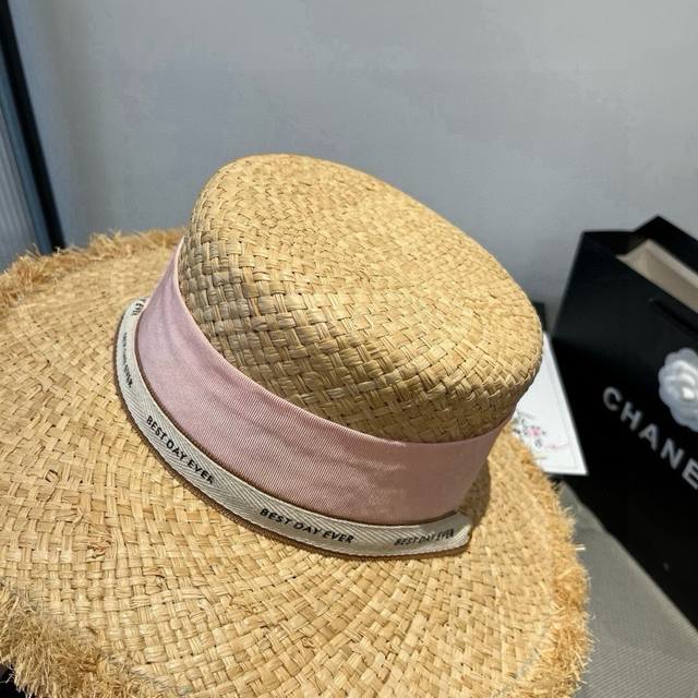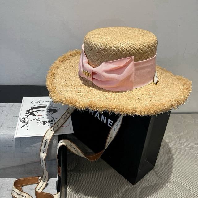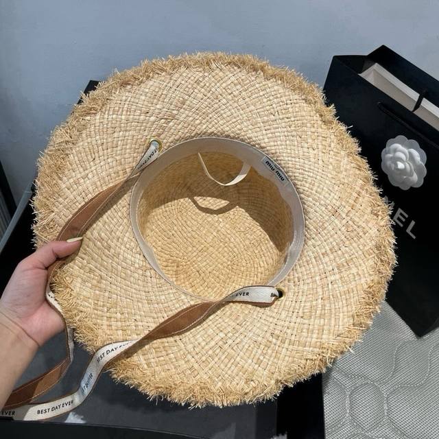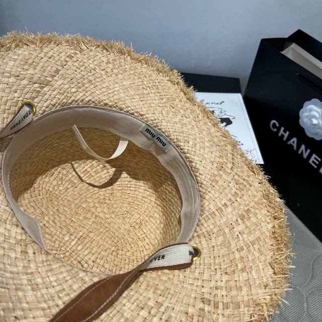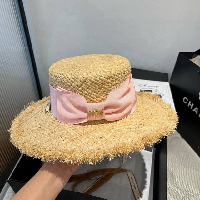 / Miumiu Miu Miu Raffia straw hat, flat top hat, head circumference 57cm DDD