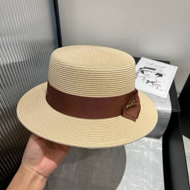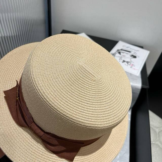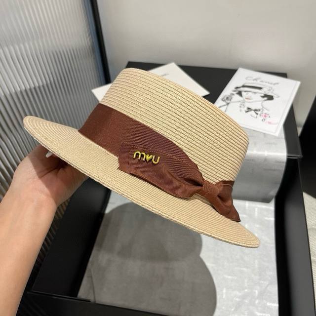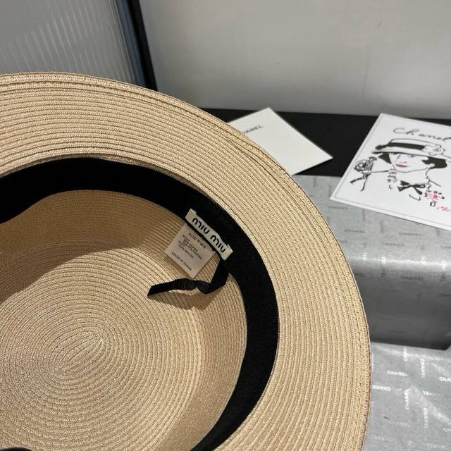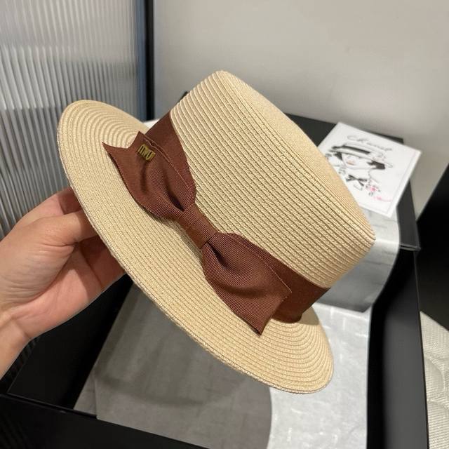 Miumiu new flat top hat, Taiwan PP straw fabric, high-end custom, head circumference 57cm