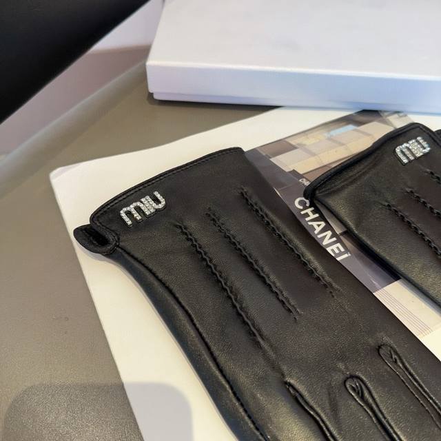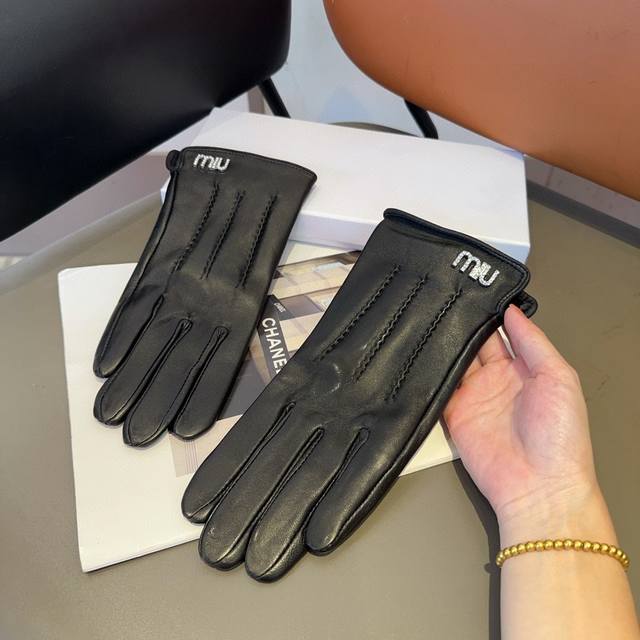 Miumiu sheepskin gloves, fashionable gloves, warm lining for autumn and winter, classic and simple, super comfortable and soft, versatile! One size