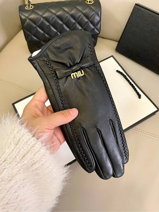 Miumiu's popular women's leather gloves are made of touch-screen sheepskin imported from Ethiopia. They have a simple and elegant static style with a small logo buckle and a super soft velvet lining for comfort.