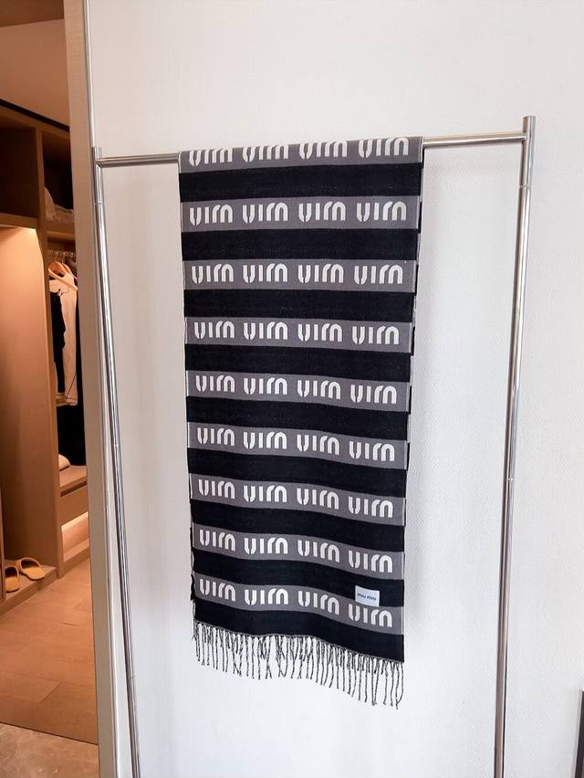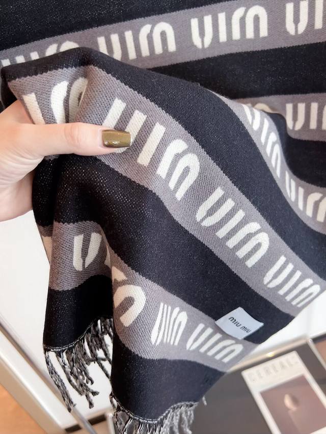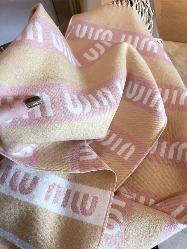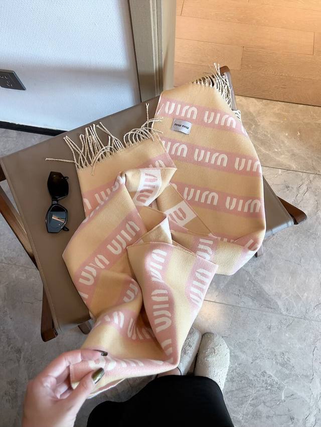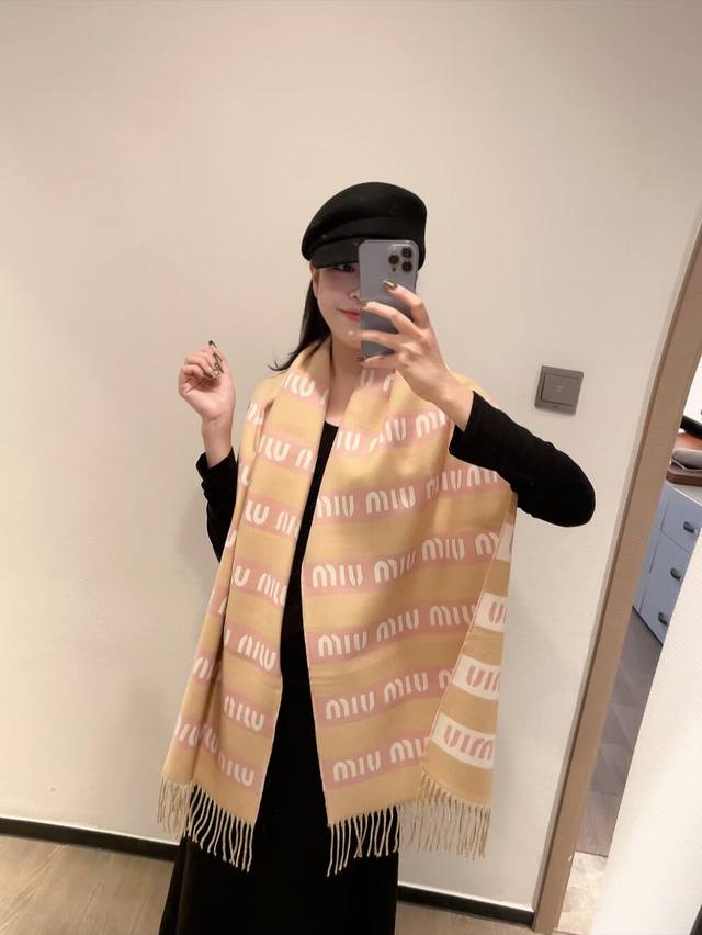 Miumiu's warm and textured cashmere scarf keeps you warm all winter long. It's furry and warm, and it creates a perfect autumn and winter atmosphere. It's high-end and beautiful. Size 45180