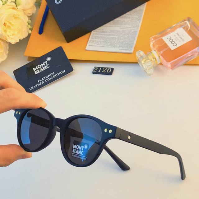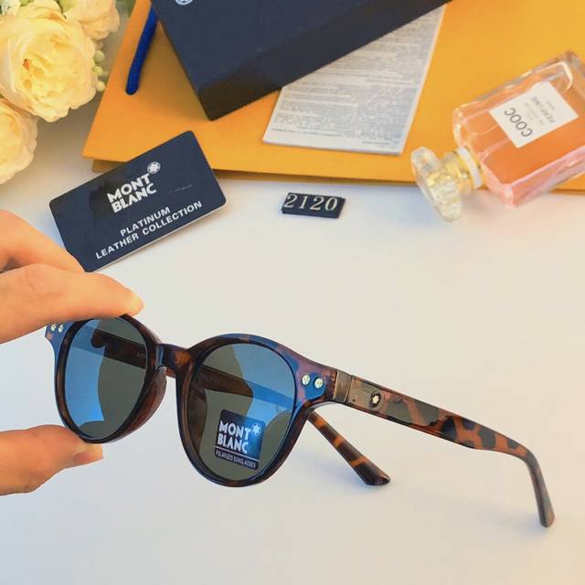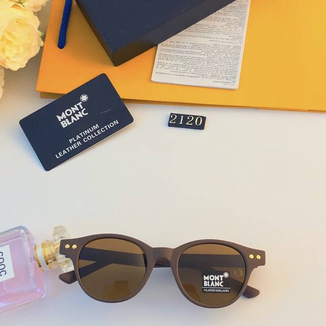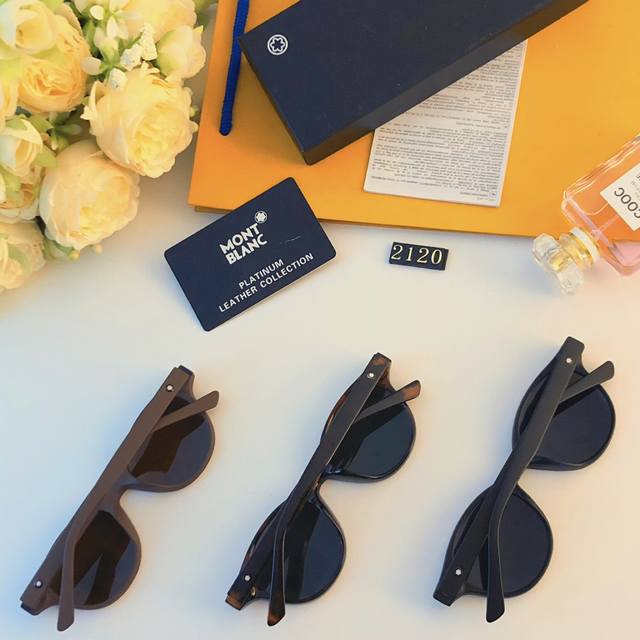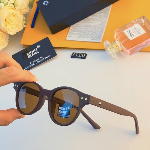 Mont Blan* New Fashion Retro Round Frame Sunglasses, Street Style, Fashion Show Sunglasses for Men and Women, Black Frame, Brown Trendy Glasses