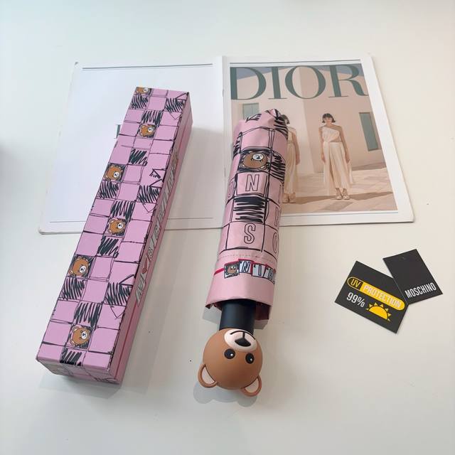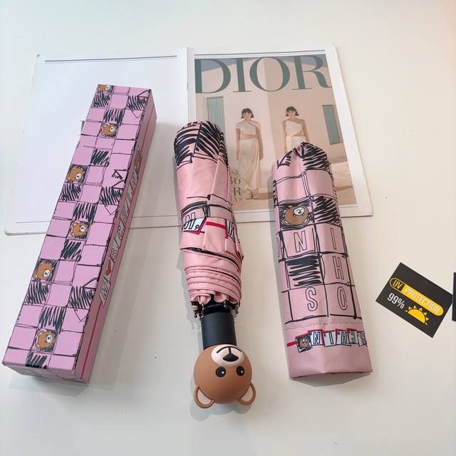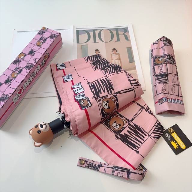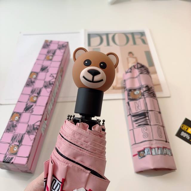 Moschino Moschino Bear Head Handle Tri-Folding Automatic Umbrella is an Italian brand named after the designer Franco Moschino. It was founded in 1983 and has a noble and charming style, fashionable and cute without losing its elegance.