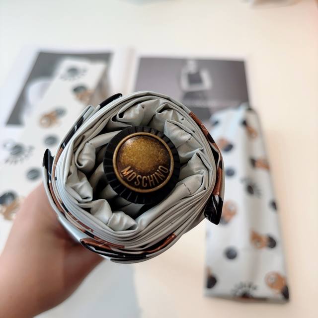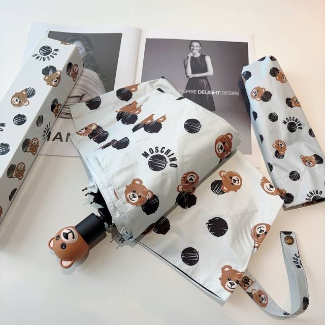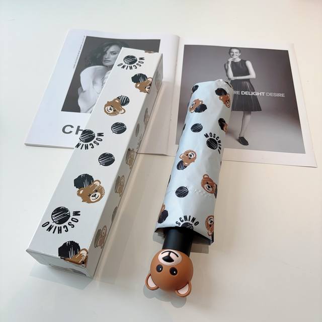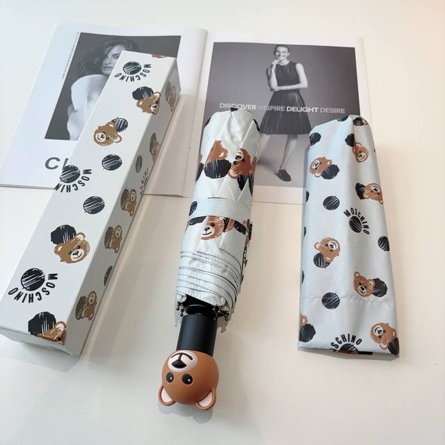 Moschino Moschino Bear Head Handle Tri-Folding Automatic Umbrella is an Italian brand named after the designer Franco Moschino. It was founded in 1983 and has a noble and charming style, fashionable and cute without losing its elegance.