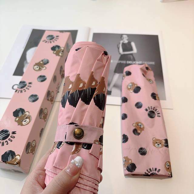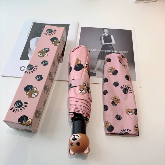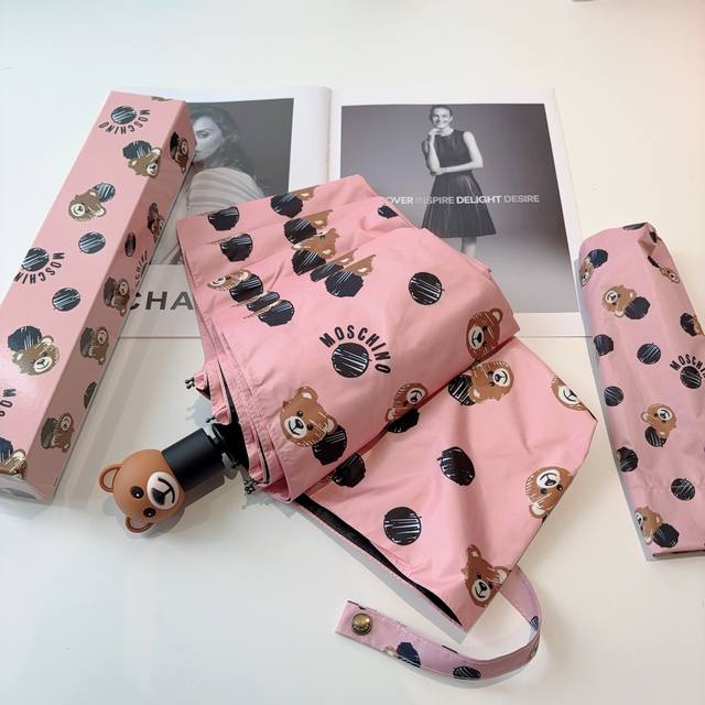 Moschino Moschino Bear Head Handle Tri-Folding Automatic Umbrella is an Italian brand named after the designer Franco Moschino. It was founded in 1983 and has a noble and charming style, fashionable and cute without losing its elegance.