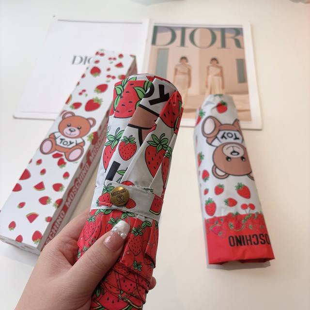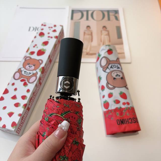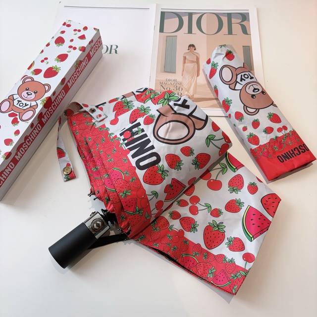 Moschino Three-Fold Automatic Umbrella: Designed By Franco Moschino, This Italian Brand Named After Its Founder Was Established In 1983. It Features A Sophisticated, Charming, Fashionable, Cute Yet Elegant Style.