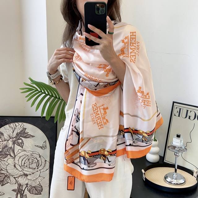 New Arrival! This new silk satin long scarf is truly breathtaking! The effect when worn is absolutely stunning. The quality is impeccable. This scarf exudes a high-end silk scarf aura while being incredibly delicate. It's definitely a must-have for sophisticated women with a refined, elegant style. It feels very classy, lightweight, and extremely comfortable. A must-have for spring and summer travel and air-conditioned rooms. Even more beautiful in winter. Limited stock! Sizes 90-180cm.