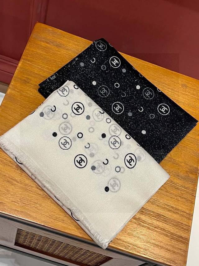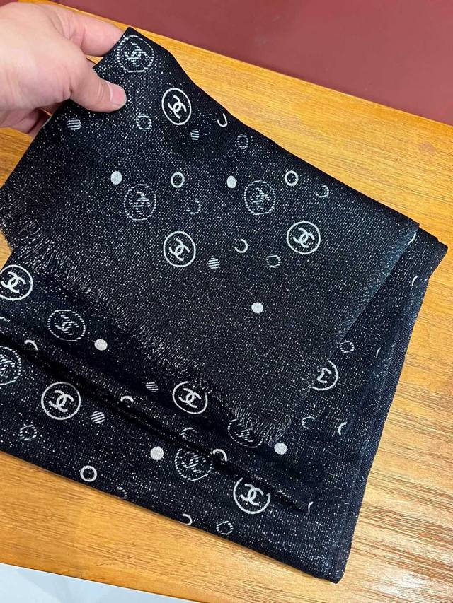 New Arrival! This shimmering, custom-made silver-thread cashmere long scarf is absolutely stunning! [crying emoji] Featuring the Chanel silver-thread logo, this is a top-tier, boutique-quality scarf. Made with pure cashmere and sequins, its unique design, along with Chanel's signature patchwork pattern print, is incredibly beautiful. It looks luxurious and high-class when worn. Rare! A little pricey... see for yourself if you think it's beautiful. Size: 105 x 200 cm. A long scarf, 100% top-grade pure cashmere.