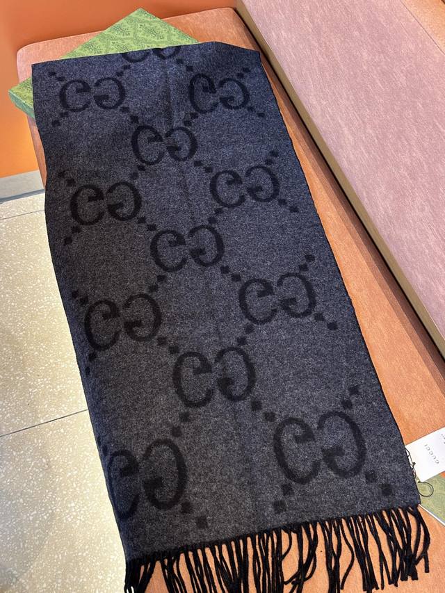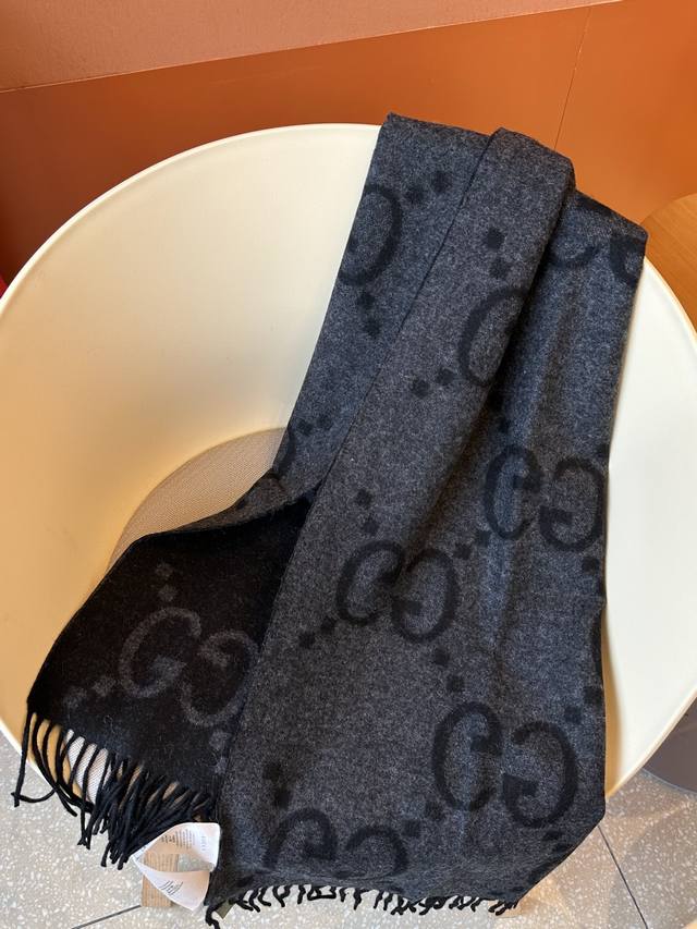 New Big G Double-Sided Cashmere Scarf in Brown Size: 45*200cm 100% Cashmere A rare pure cashmere product from G! Extra-heavy weight, top-grade cashmere, stylish Big G jacquard pattern, original product, absolutely premium! Two-sided color matching: One scarf can be worn in two ways - the same style for both men and women, the large shawl is practical and a great choice for business trips and travel!