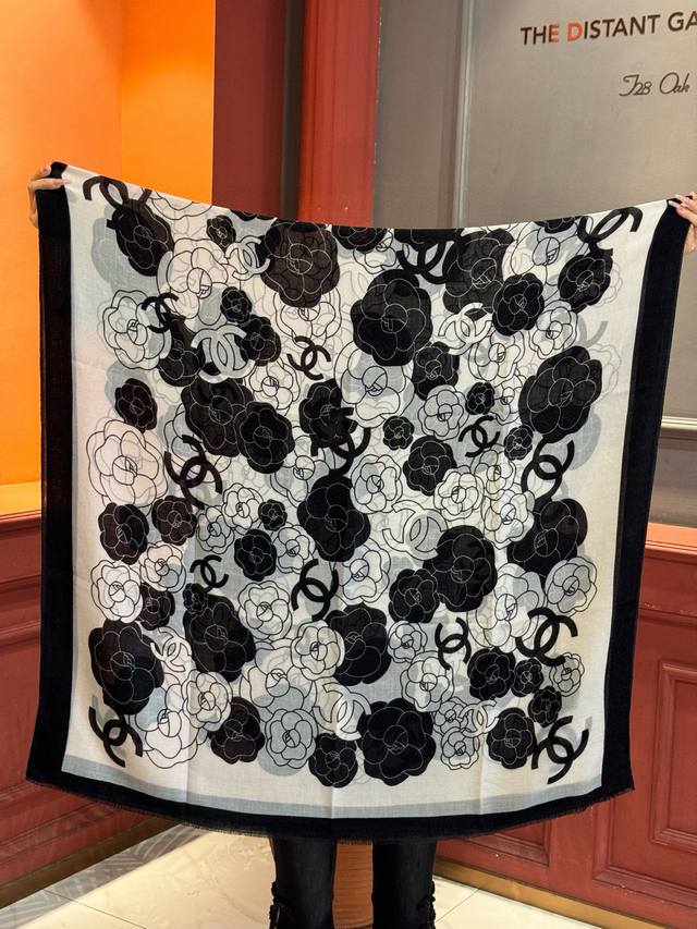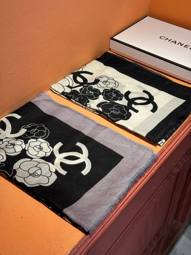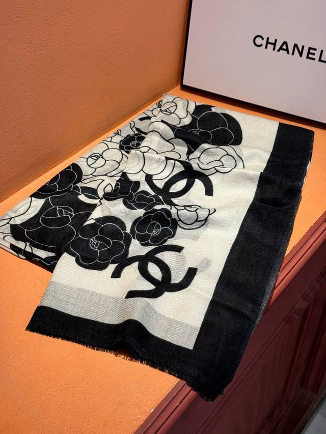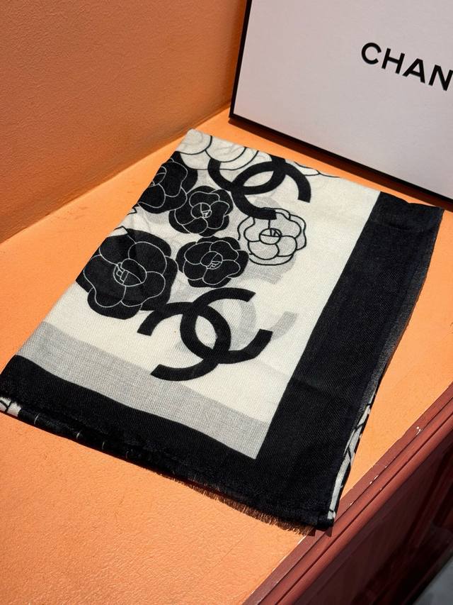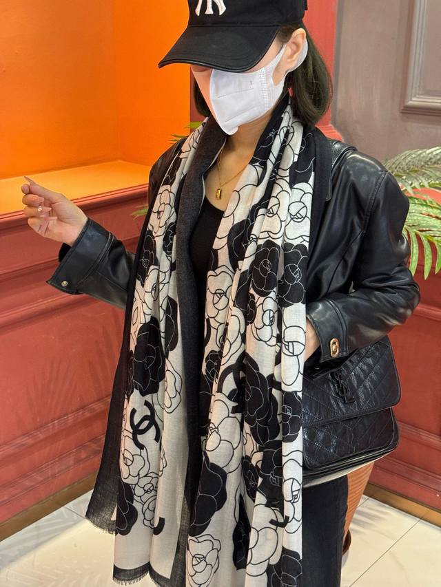 New Cashmere Camellia Long Scarf - Super flattering! Sophisticated and feminine! Cashmere scarves can be this beautiful!!! This double-sided floral cashmere scarf is truly luxurious! The signature Chanel floral pattern complements outfits perfectly! The new fusion of the signature camellia and double C elements creates a luxurious and elegant feel. The thin cashmere texture and print design are truly amazing! Perfect for spring and summer with a white shirt for a chic and stylish look, and for autumn and winter with a coat for a sophisticated touch. A must-have for fashion-conscious women!! Soft, smooth, and comfortable! This scarf is incredibly easy to style. A very luxurious design, yet it exudes a uniquely elegant and sophisticated aura! Pair this scarf with a simple base layer for a comfortable and tasteful high-end look. Highly recommended!! Size: 100*200cm Cashmere Long Scarf