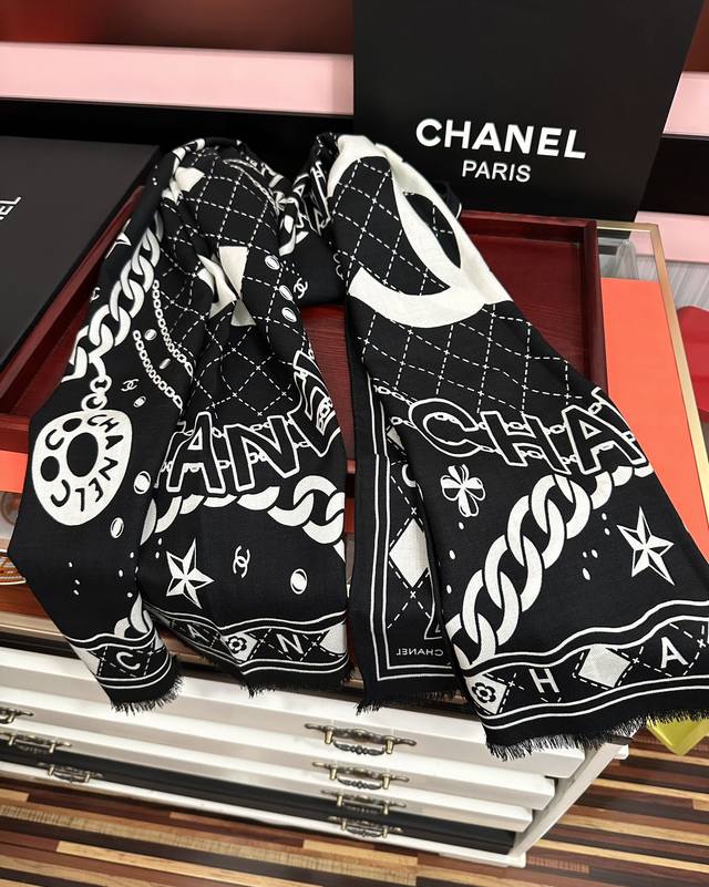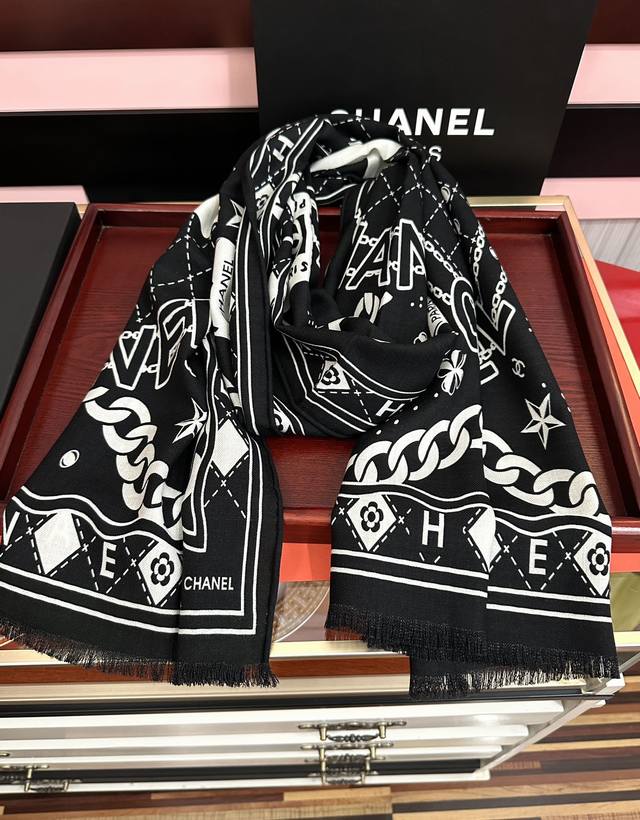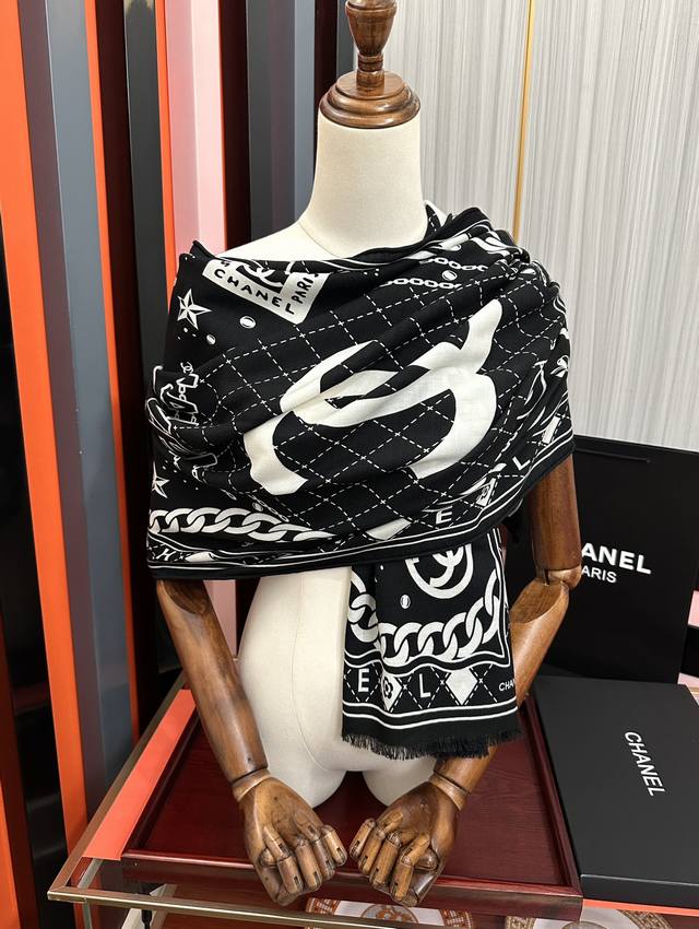 New Chanel 2025 double-sided same color double C graffiti black and white top design [lips] So beautiful, you must act fast [lips] Can be used in all seasons, truly beautiful and incredibly stunning. The effect when worn is simply gorgeous. The quality is perfect. The whole scarf gives you an aura while being very delicate and beautiful. Definitely worth buying. The real thing will make you glad you are a woman. Absolutely gorgeous. Size: 65X185, Material: Cashmere, 2 colors.