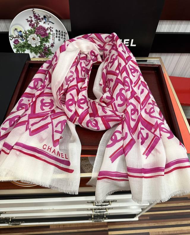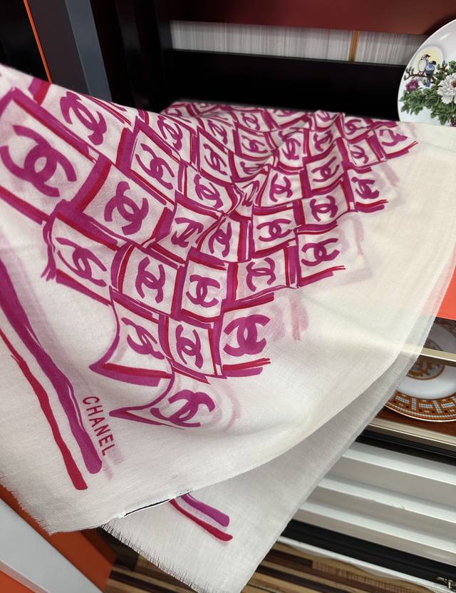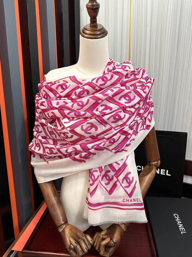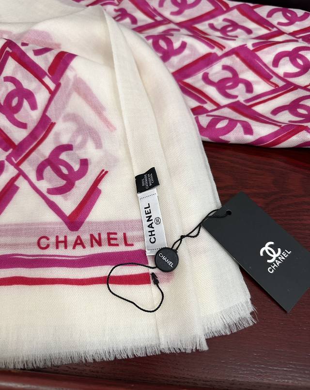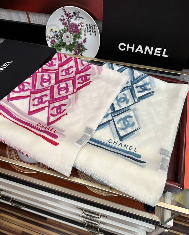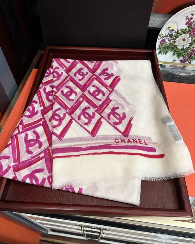 New Chanel 2025 latest style, truly amazing! The actual product is beautiful. The shawl with print is exquisite in both design and printing, with attention to detail. The scarf exudes a powerful aura while being very refined and high-end. Highly recommended for VIPs, definitely worth buying. Size: 100X200Cm, Material: Cashmere.