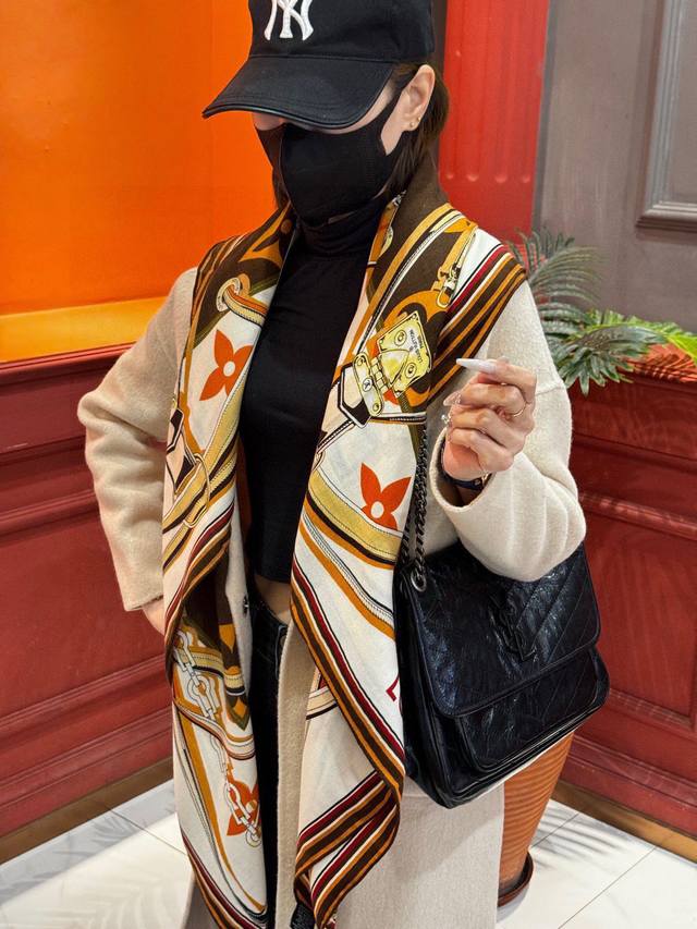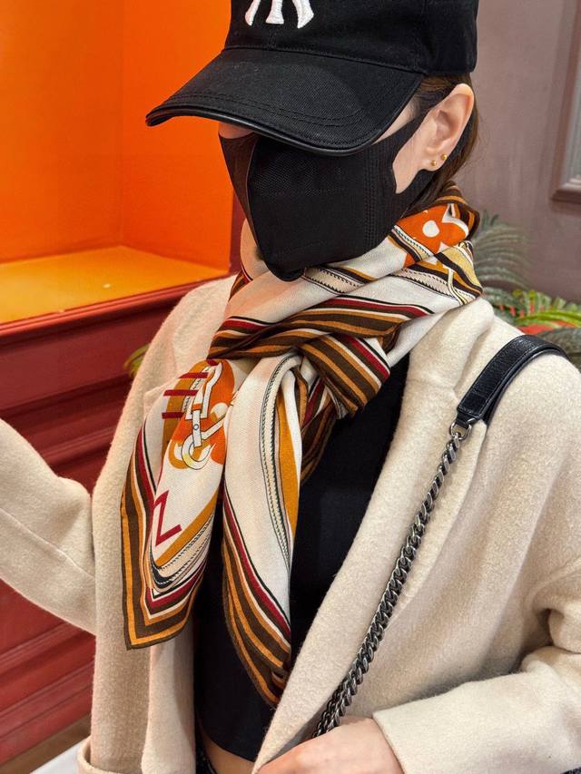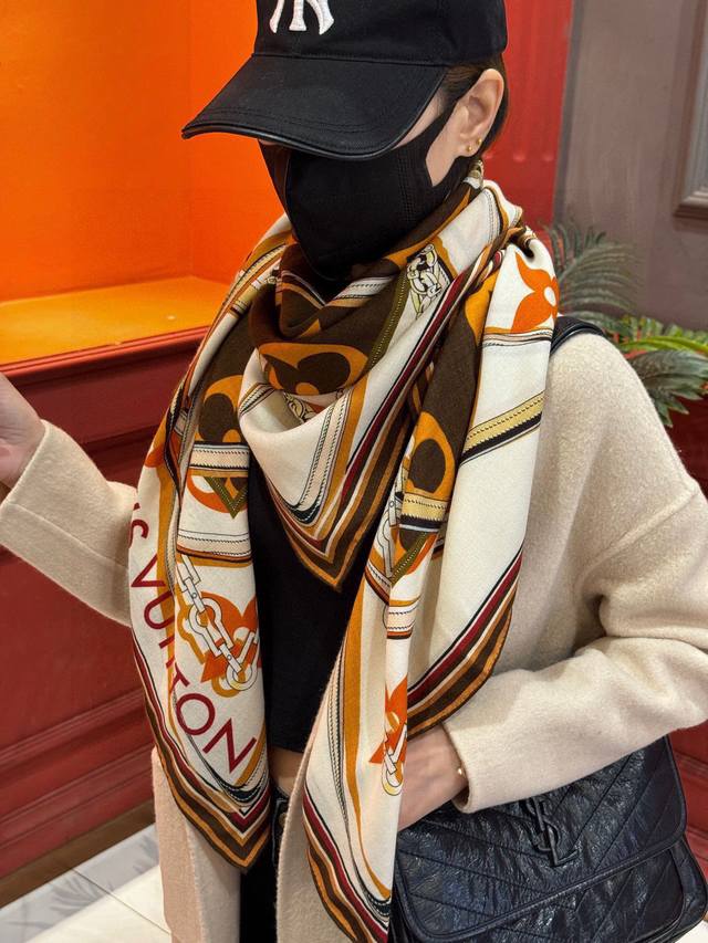 New Monogram Jacquard Denim 140 velvet square scarf High-end edition, double-si