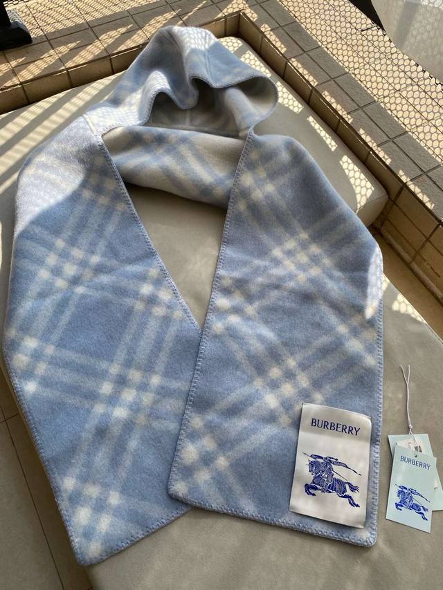 New plaid hooded scarf in sky blue!