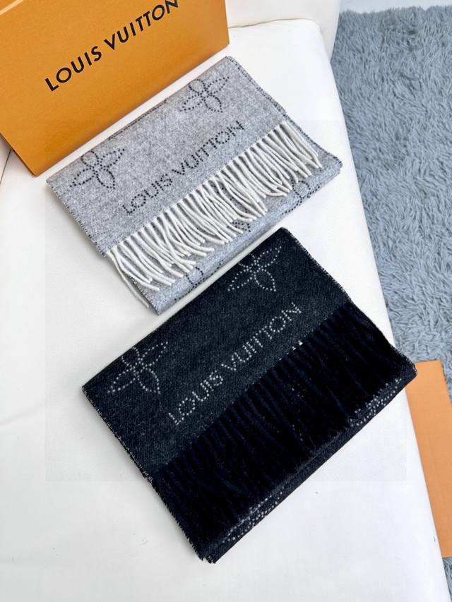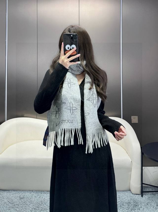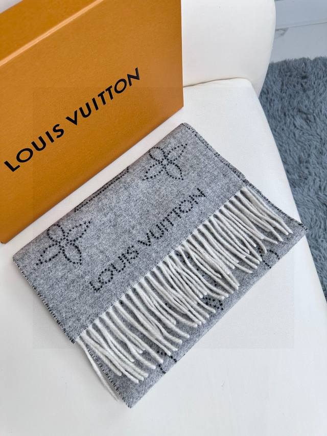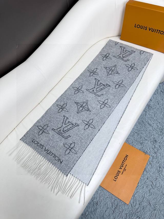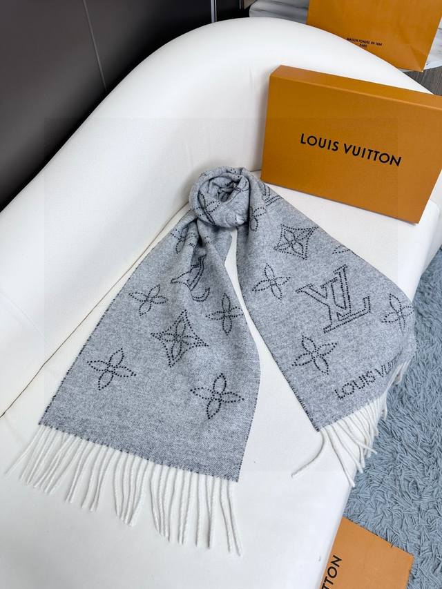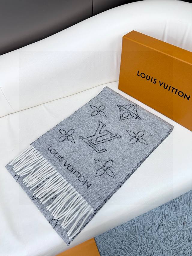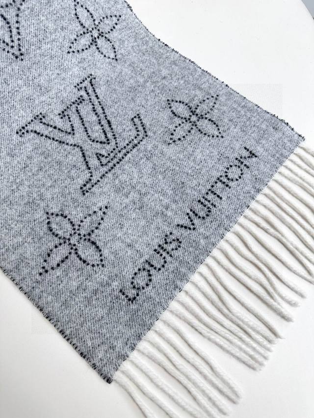 Monogram openwork pattern, while the other side is dyed a subtle solid color. The cashmere and silk blend provides a soft texture and cozy warmth.