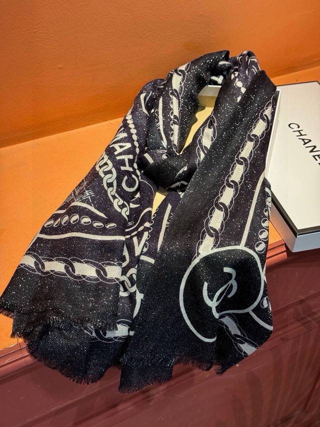 New shiny scarf, a new style of silver-thread cashmere long scarf for customers. Gorgeous! [Tears] Chanel silver-thread icon, the royal hall-level top-grade new counter sale. Pure cashmere sequins, unique design style, and rich Chanel's special patchwork pattern print of this season. Extremely beautiful when worn. Extremely luxurious, high-end and rare ~ a little expensive ~ whether it looks good or not, you can judge for yourself. Size 105